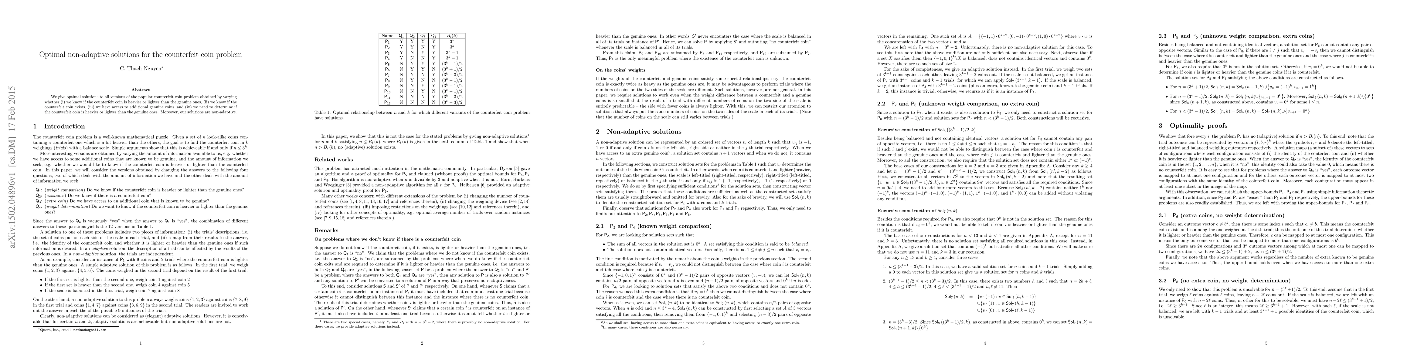 The paper presents a systematic approach to construct solution sets for various counterfeit coin problem variants, ensuring non-adaptiveness while satisfying necessary conditions.