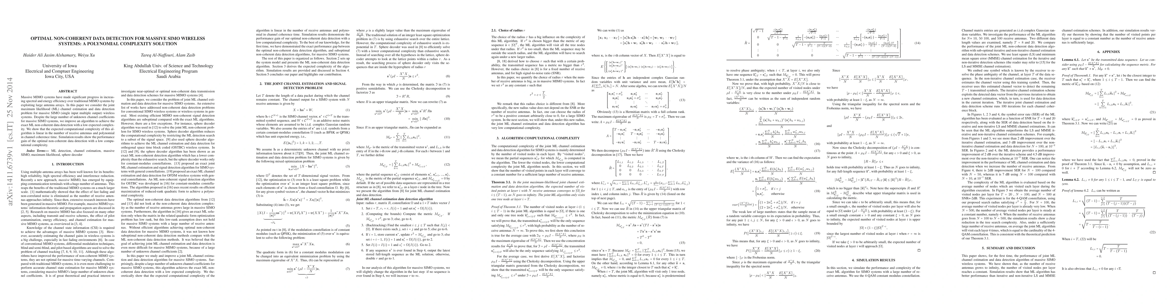 This paper proposes a low-complexity algorithm for maximum likelihood non-coherent data detection in massive SIMO wireless systems, achieving polynomial complexity and performance gains.