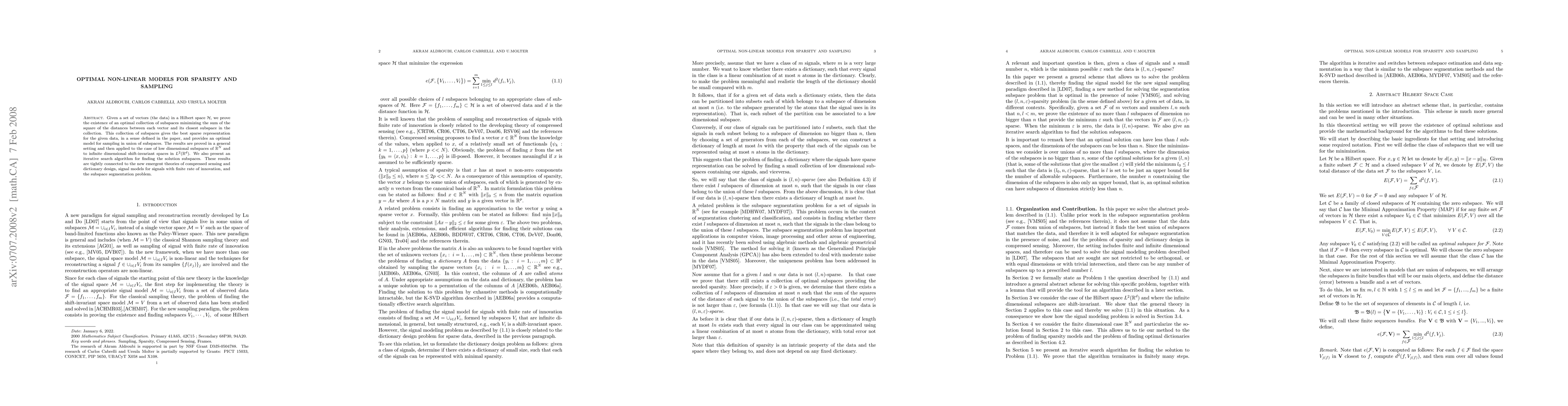 Given a set of vectors (the data) in a Hilbert space H, we prove the existence of an optimal collection of subspaces minimizing the sum of the square of the distances between each vector and its closest subspace in the collection. This collection of subspaces gives the best sparse representation for the given data, in a sense defined in the paper, and provides an optimal model for sampling in union of subspaces. The results are proved in a general setting and then applied to the case of low dimensional subspaces of R^N and to infinite dimensional shift-invariant spaces in L^2(R^d). We also present an iterative search algorithm for finding the solution subspaces. These results are tightly connected to the new emergent theories of compressed sensing and dictionary design, signal models for signals with finite rate of innovation, and the subspace segmentation problem.