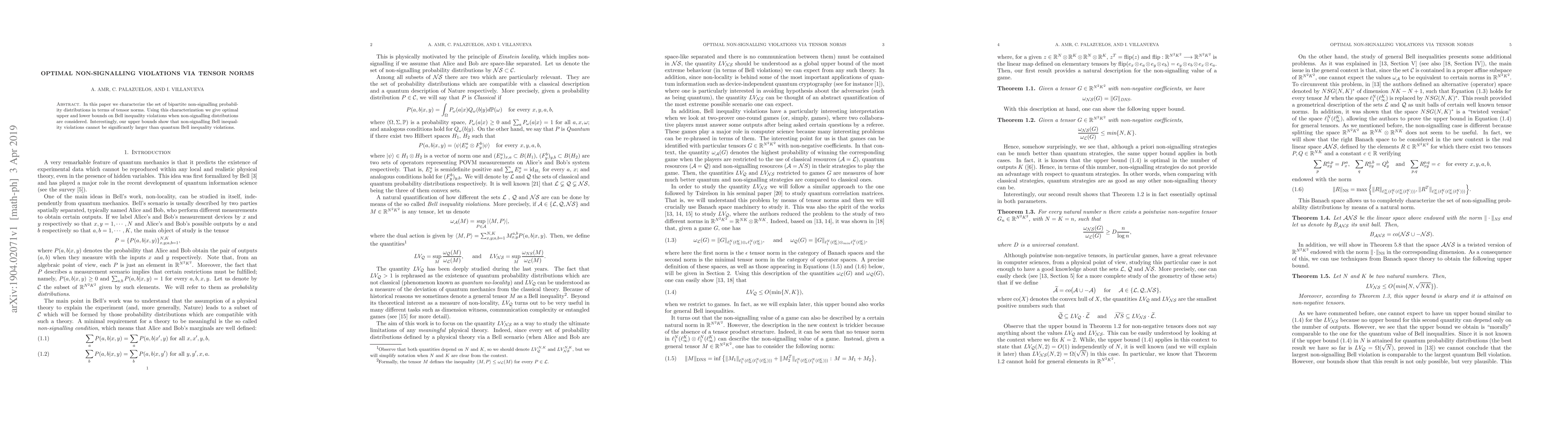 This paper characterizes bipartite non-signalling probability distributions using tensor norms and provides optimal bounds on Bell inequality violations for such distributions, revealing that non-signalling violations are not significantly larger than quantum violations.