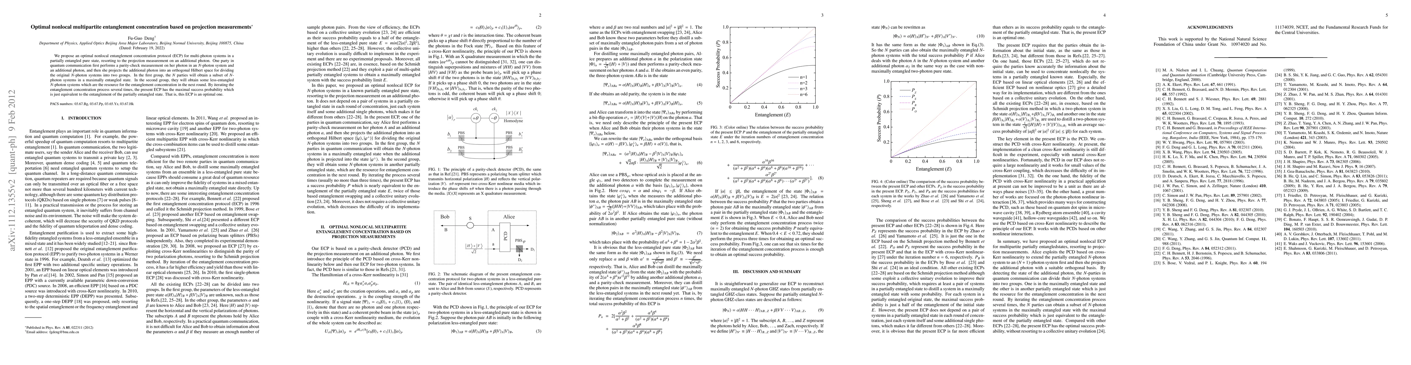 This paper proposes an optimal nonlocal entanglement concentration protocol for multi-photon systems in partially entangled states, utilizing projection measurements on an additional photon. The protocol iteratively divides the system into maximally entangled and less-entangled subsets, achieving the highest possible success probability equivalent to the initial entanglement.