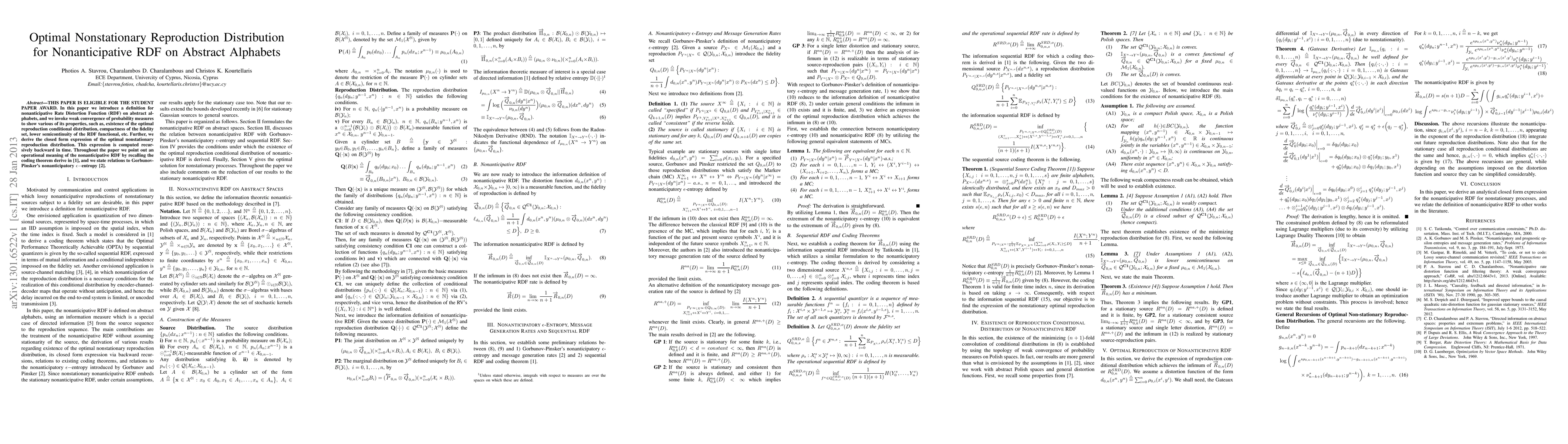 This paper defines a nonanticipative Rate Distortion Function (RDF) on abstract alphabets and demonstrates its properties using weak convergence. It derives a closed form for the optimal nonstationary reproduction distribution, computed recursively backward in time, and relates it to coding theorems and nonanticipatory entropy.