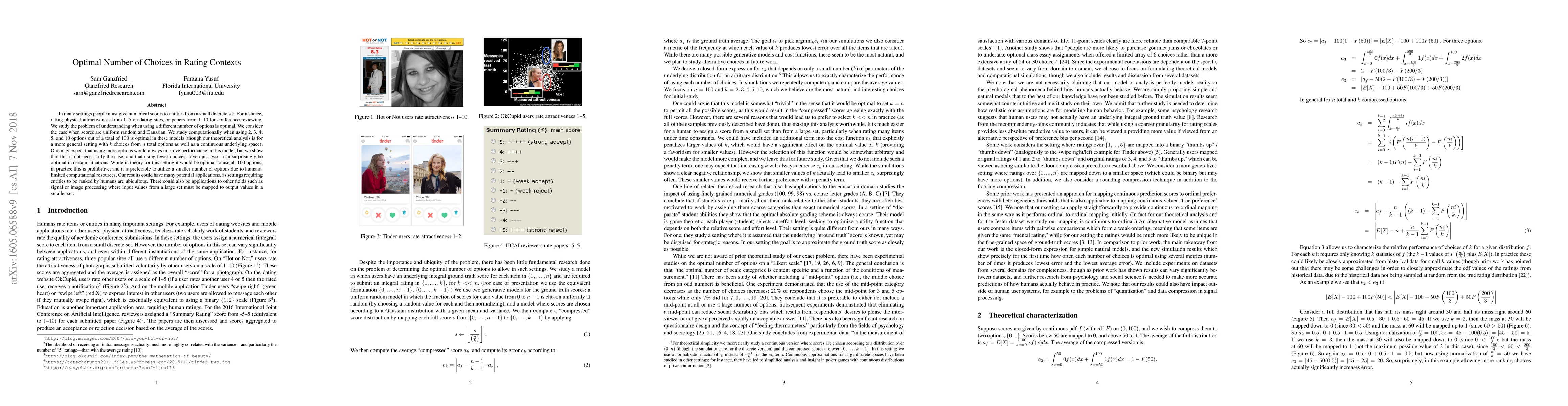 In many settings people must give numerical scores to entities from a small discrete set. For instance, rating physical attractiveness from 1--5 on dating sites, or papers from 1--10 for conference reviewing. We study the problem of understanding when using a different number of options is optimal. We consider the case when scores are uniform random and Gaussian. We study computationally when using 2, 3, 4, 5, and 10 options out of a total of 100 is optimal in these models (though our theoretical analysis is for a more general setting with $k$ choices from $n$ total options as well as a continuous underlying space). One may expect that using more options would always improve performance in this model, but we show that this is not necessarily the case, and that using fewer choices---even just two---can surprisingly be optimal in certain situations. While in theory for this setting it would be optimal to use all 100 options, in practice this is prohibitive, and it is preferable to utilize a smaller number of options due to humans' limited computational resources. Our results could have many potential applications, as settings requiring entities to be ranked by humans are ubiquitous. There could also be applications to other fields such as signal or image processing where input values from a large set must be mapped to output values in a smaller set.