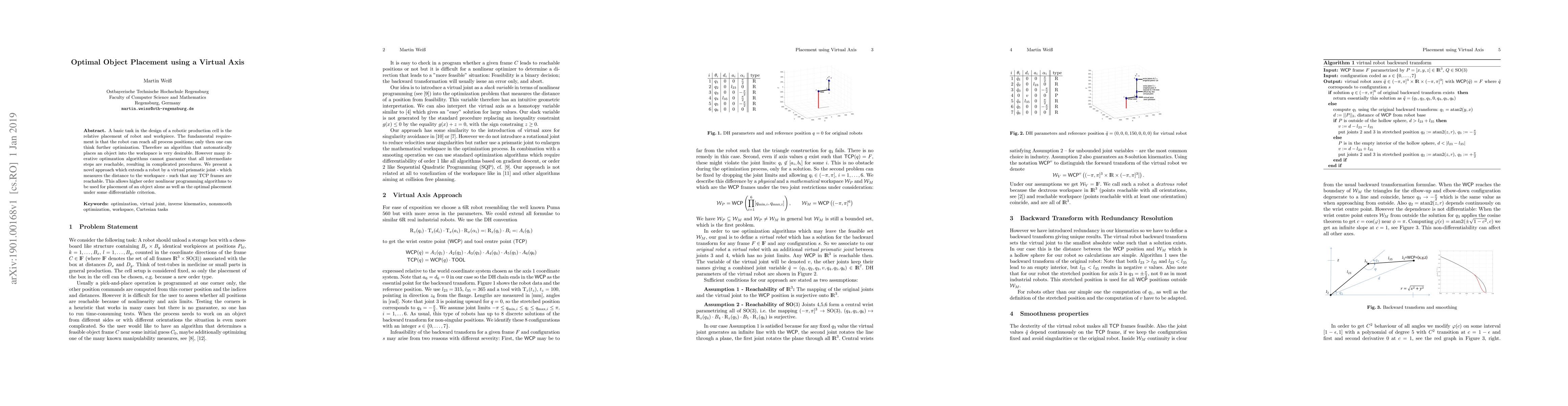 A new approach extends a robot with a virtual axis to ensure reachable TCP frames, enabling the use of nonlinear programming algorithms for optimal object placement.