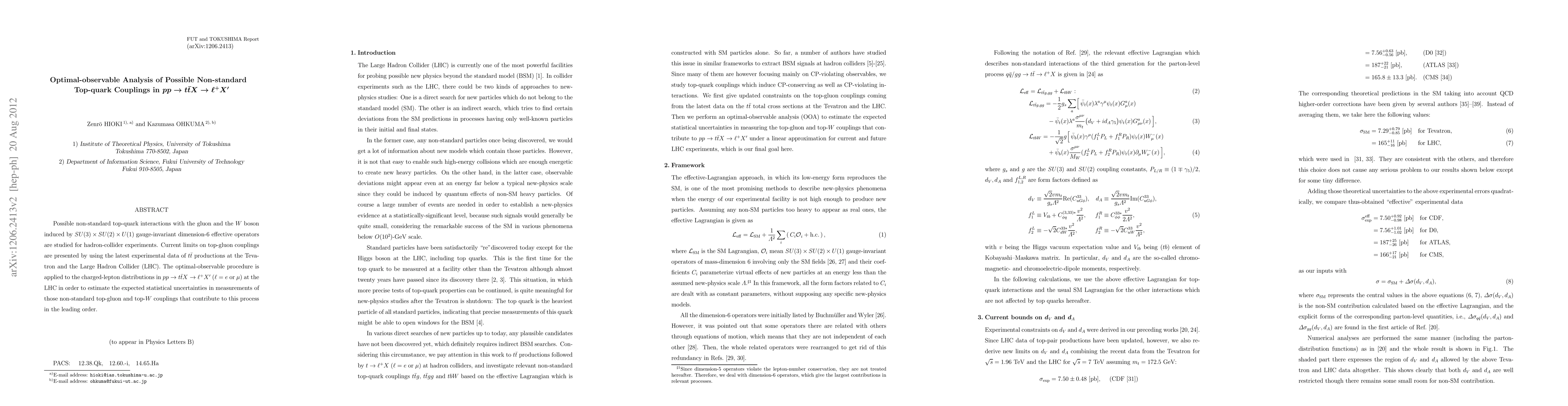 Possible non-standard top-quark interactions with the gluon and the W boson induced by SU(3) X SU(2) X U(1) gauge-invariant dimension-6 effective operators are studied for hadron-collider experiments. Current limits on top-gluon couplings are presented by using the latest experimental data of t t-bar productions at the Tevatron and the Large Hadron Collider (LHC). The optimal-observable procedure is applied to the charged-lepton distributions in p p -> t t-bar X -> l^+ X' (l = e or mu) at the LHC in order to estimate the expected statistical uncertainties in measurements of those non-standard top-gluon and top-W couplings that contribute to this process in the leading order.