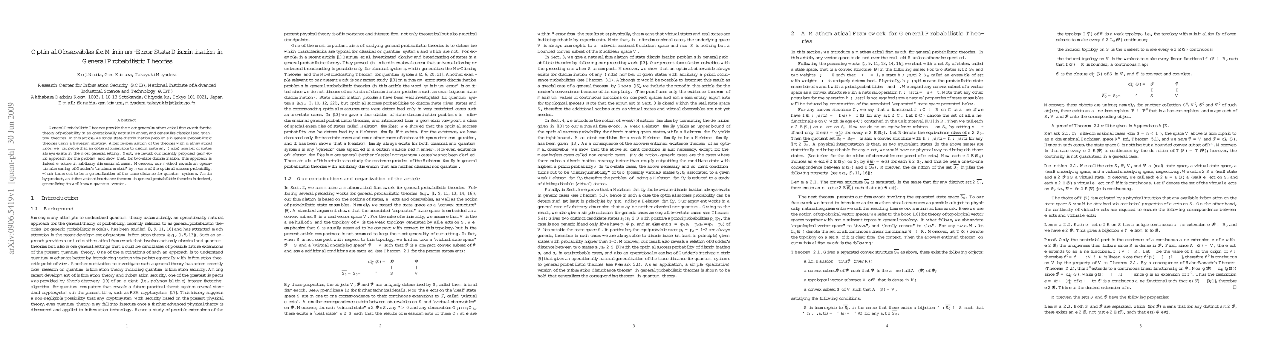 This paper investigates optimal observables for state discrimination in general probabilistic theories using a Bayesian approach. It proves the existence of an optimal observable for any finite number of states and demonstrates the effectiveness of a geometric approach for two-state discrimination, revealing an operational meaning of Gudder's intrinsic metric and deriving an information-disturbance theorem.