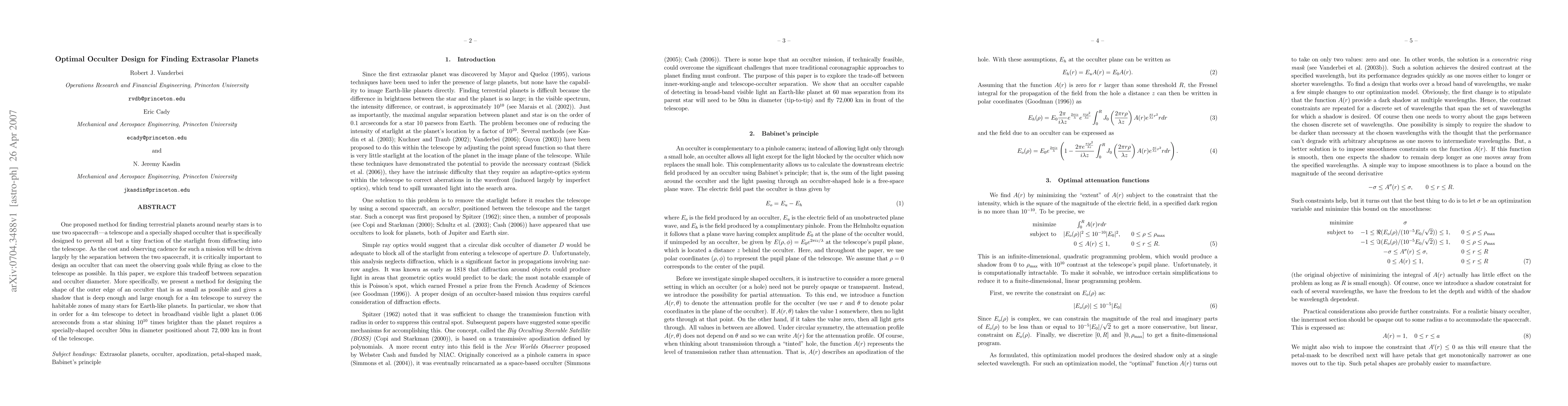 One proposed method for finding terrestrial planets around nearby stars is to use two spacecraft--a telescope and a specially shaped occulter that is specifically designed to prevent all but a tiny fraction of the starlight from diffracting into the telescope. As the cost and observing cadence for such a mission will be driven largely by the separation between the two spacecraft, it is critically important to design an occulter that can meet the observing goals while flying as close to the telescope as possible. In this paper, we explore this tradeoff between separation and occulter diameter. More specifically, we present a method for designing the shape of the outer edge of an occulter that is as small as possible and gives a shadow that is deep enough and large enough for a 4m telescope to survey the habitable zones of many stars for Earth-like planets. In particular, we show that in order for a 4m telescope to detect in broadband visible light a planet 0.06 arcseconds from a star shining $10^{10}$ times brighter than the planet requires a specially-shaped occulter 50m in diameter positioned about $72,000$ km in front of the telescope.