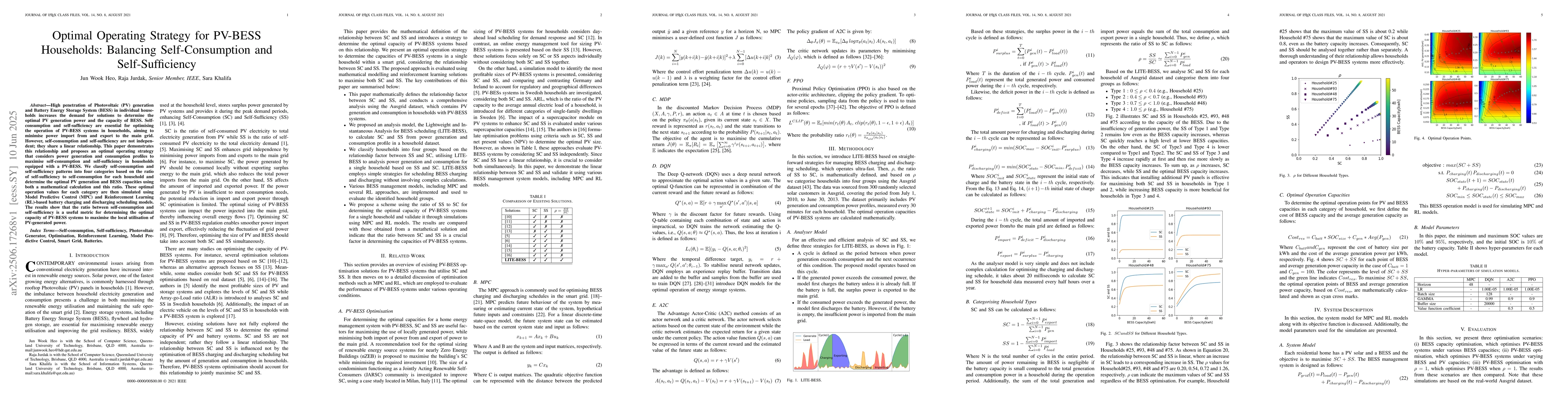 High penetration of Photovoltaic (PV) generation and Battery Energy Storage System (BESS) in individual households increases the demand for solutions to determine the optimal PV generation power and the capacity of BESS. Self-consumption and self-sufficiency are essential for optimising the operation of PV-BESS systems in households, aiming to minimise power import from and export to the main grid. However, self-consumption and self-sufficiency are not independent; they share a linear relationship. This paper demonstrates this relationship and proposes an optimal operating strategy that considers power generation and consumption profiles to maximise self-consumption and self-sufficiency in households equipped with a PV-BESS. We classify self-consumption and self-sufficiency patterns into four categories based on the ratio of self-sufficiency to self-consumption for each household and determine the optimal PV generation and BESS capacities using both a mathematical calculation and this ratio. These optimal operation values for each category are then simulated using Model Predictive Control (MPC) and Reinforcement Learning (RL)-based battery charging and discharging scheduling models. The results show that the ratio between self-consumption and self-sufficiency is a useful metric for determining the optimal capacity of PV-BESS systems to maximise the local utilisation of PV-generated power.