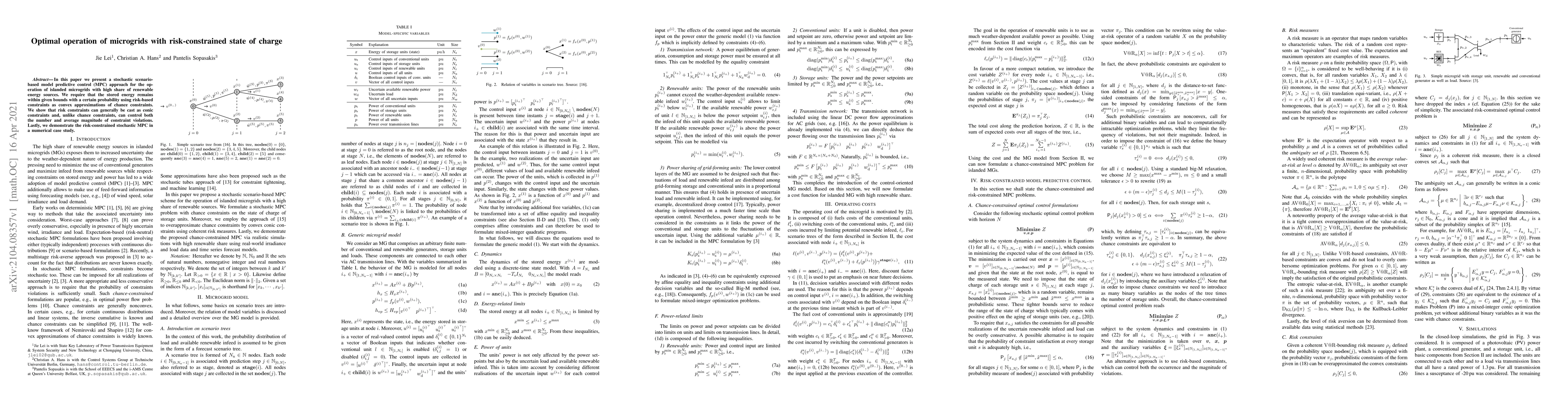 In this paper we present a stochastic scenario-based model predictive control (MPC) approach for the operation of islanded microgrids with high share of renewable energy sources. We require that the stored energy remains within given bounds with a certain probability using risk-based constraints as convex approximations of chance constraints. We show that risk constraints can generally be cast as conic constraints and, unlike chance constraints, can control both the number and average magnitude of constraint violations. Lastly, we demonstrate the risk-constrained stochastic MPC in a numerical case study.