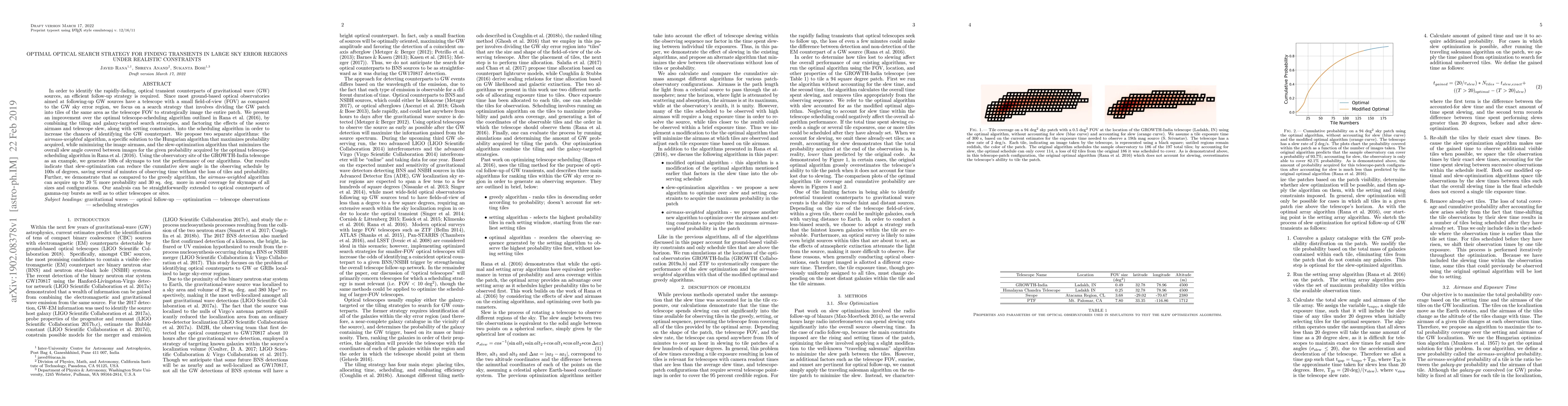 Researchers propose an optimized search strategy for finding optical transients after gravitational wave detections, reducing cumulative slew angle by hundreds of degrees and increasing probability acquisition by up to 20%.