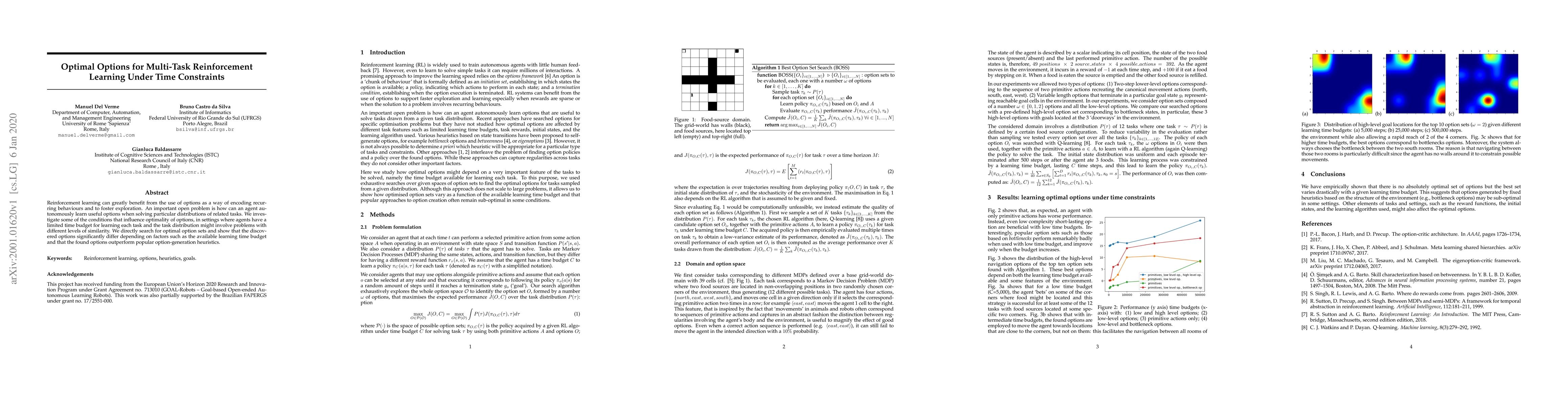 This paper explores optimal options for multi-task reinforcement learning under time constraints, demonstrating that the discovered options significantly differ based on the available learning time and outperform existing heuristics. The study identifies conditions that influence the optimality of options in varied task distributions.