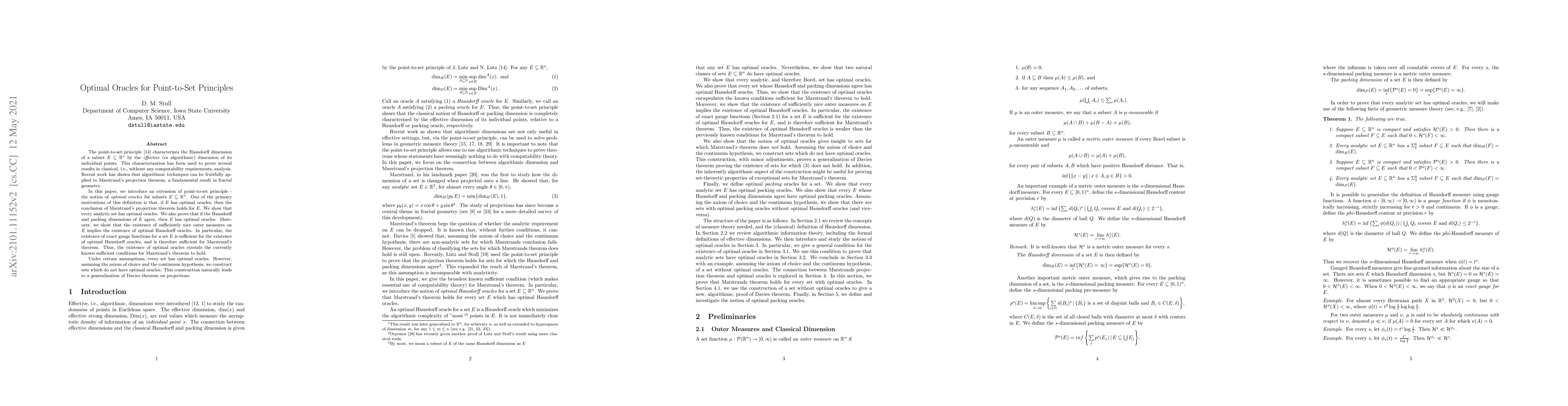 The point-to-set principle \cite{LutLut17} characterizes the Hausdorff dimension of a subset $E\subseteq\R^n$ by the \textit{effective} (or algorithmic) dimension of its individual points. This characterization has been used to prove several results in classical, i.e., without any computability requirements, analysis. Recent work has shown that algorithmic techniques can be fruitfully applied to Marstrand's projection theorem, a fundamental result in fractal geometry. In this paper, we introduce an extension of point-to-set principle - the notion of \textit{optimal oracles} for subsets $E\subseteq\R^n$. One of the primary motivations of this definition is that, if $E$ has optimal oracles, then the conclusion of Marstrand's projection theorem holds for $E$. We show that every analytic set has optimal oracles. We also prove that if the Hausdorff and packing dimensions of $E$ agree, then $E$ has optimal oracles. Moreover, we show that the existence of sufficiently nice outer measures on $E$ implies the existence of optimal Hausdorff oracles. In particular, the existence of exact gauge functions for a set $E$ is sufficient for the existence of optimal Hausdorff oracles, and is therefore sufficient for Marstrand's theorem. Thus, the existence of optimal oracles extends the currently known sufficient conditions for Marstrand's theorem to hold. Under certain assumptions, every set has optimal oracles. However, assuming the axiom of choice and the continuum hypothesis, we construct sets which do not have optimal oracles. This construction naturally leads to a generalization of Davies theorem on projections.