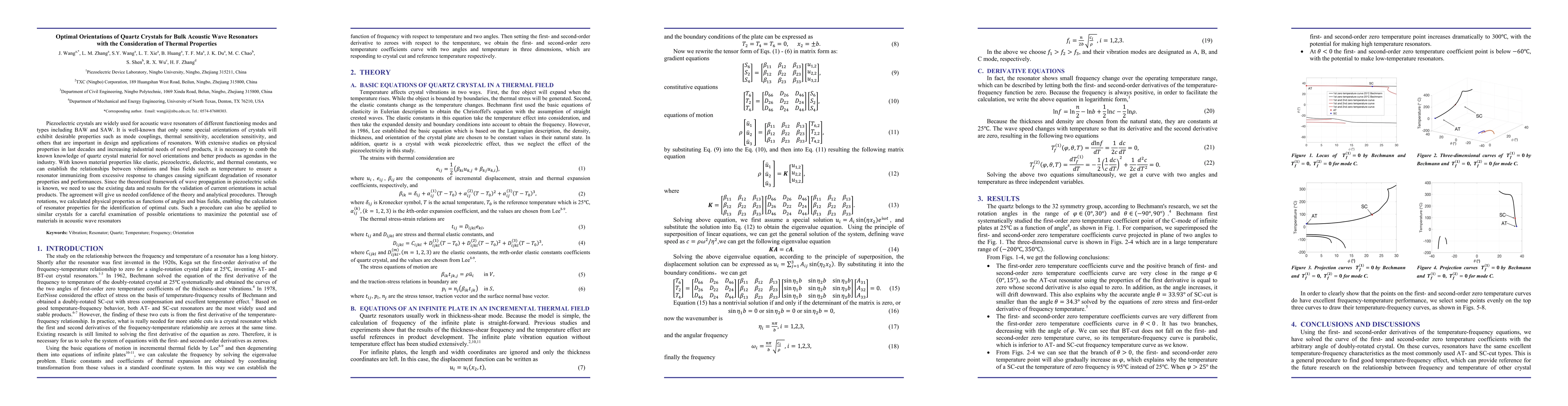 This paper investigates optimal orientations of quartz crystals for bulk acoustic wave resonators by considering their thermal properties. It aims to identify the best crystal cuts that maximize resonator performance while minimizing sensitivity to temperature changes, using established material properties and theoretical frameworks for wave propagation in piezoelectric solids.
