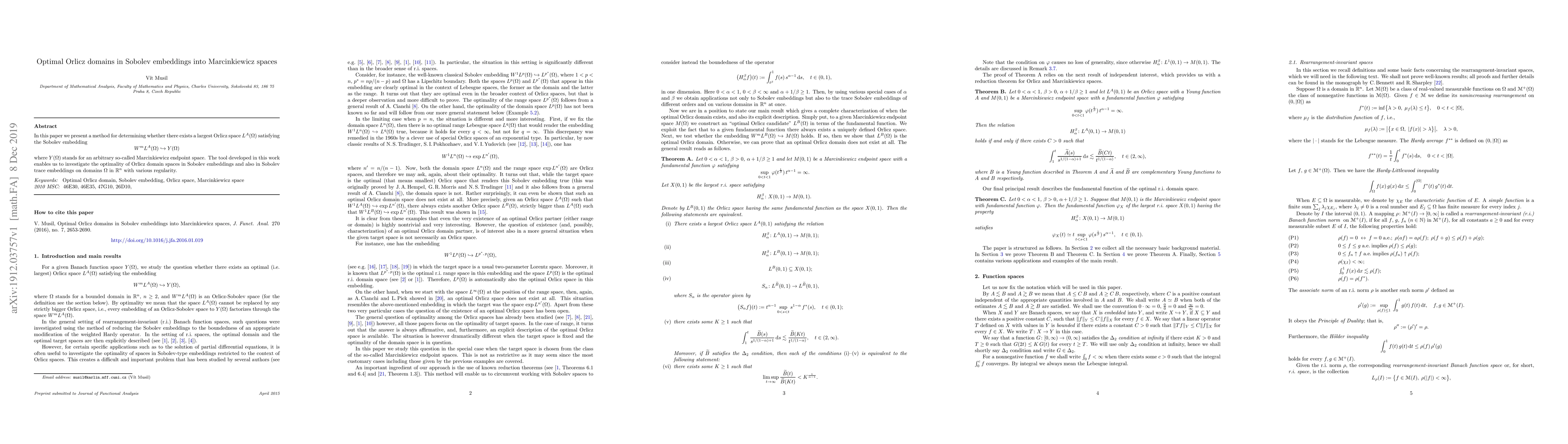 This paper introduces a method to determine the optimal Orlicz space $L^A(\Omega)$ that satisfies the Sobolev embedding $W^mL^A(\Omega) \to Y(\Omega)$, where $Y(\Omega)$ is a Marcinkiewicz space, investigating the optimality in Sobolev and trace embeddings for domains $\Omega$ in $\mathbb{R}^n$.