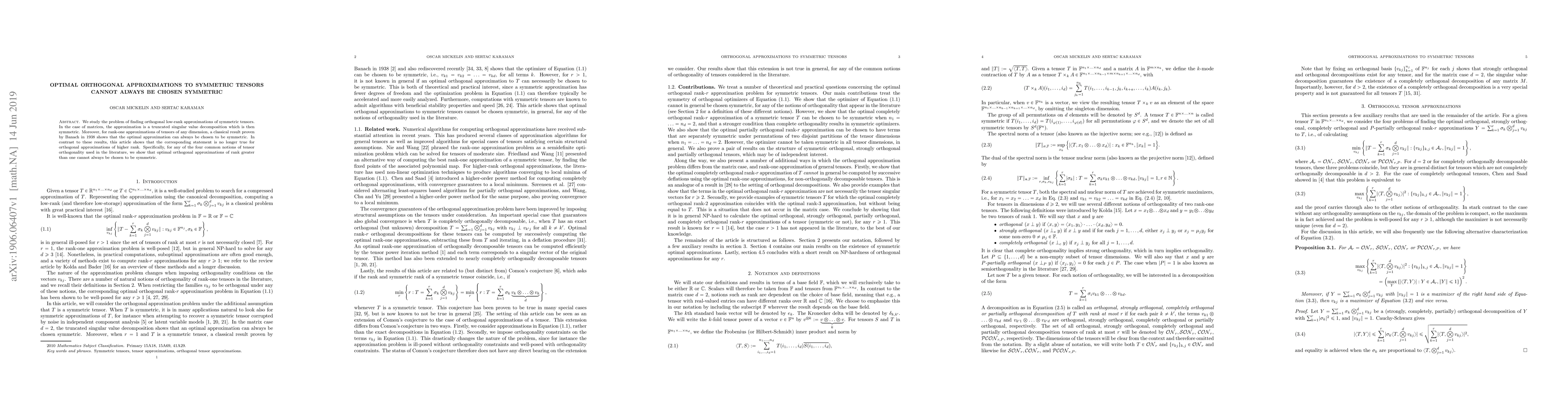 This paper investigates the problem of finding orthogonal low-rank approximations of symmetric tensors, revealing that unlike matrices and rank-one tensors, optimal orthogonal approximations of higher rank symmetric tensors cannot always be chosen to be symmetric. This challenges previous results and highlights the complexity of tensor approximations.