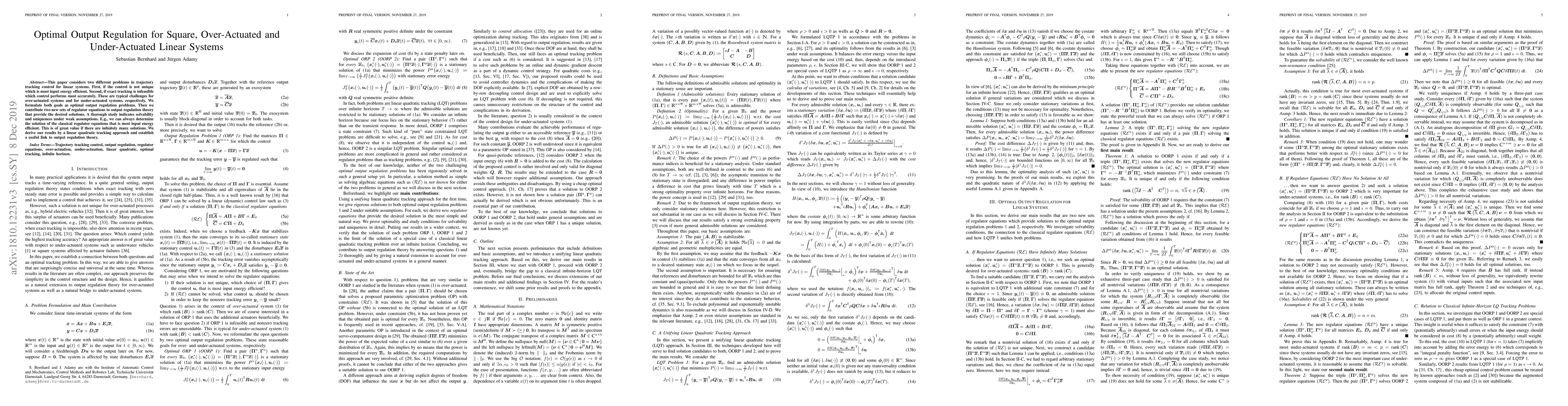 This paper solves two problems in linear system control: finding the most energy-efficient input for over-actuated systems and determining the most accurate control for under-actuated systems, using new regulator equations.