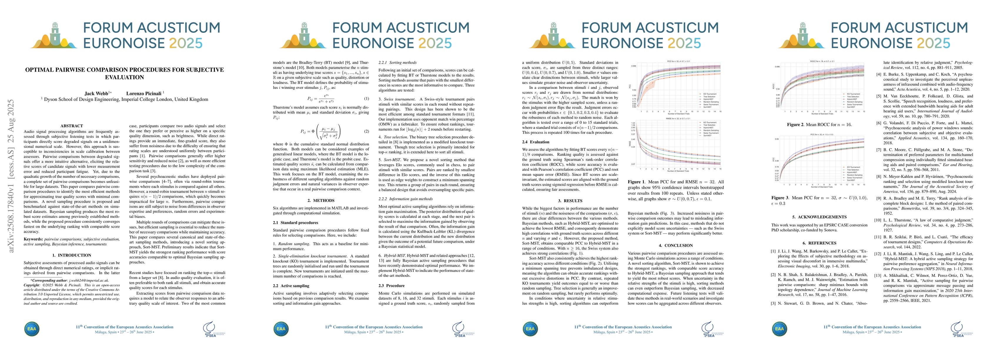 Audio signal processing algorithms are frequently assessed through subjective listening tests in which participants directly score degraded signals on a unidimensional numerical scale. However, this approach is susceptible to inconsistencies in scale calibration between assessors. Pairwise comparisons between degraded signals offer a more intuitive alternative, eliciting the relative scores of candidate signals with lower measurement error and reduced participant fatigue. Yet, due to the quadratic growth of the number of necessary comparisons, a complete set of pairwise comparisons becomes unfeasible for large datasets. This paper compares pairwise comparison procedures to identify the most efficient methods for approximating true quality scores with minimal comparisons. A novel sampling procedure is proposed and benchmarked against state-of-the-art methods on simulated datasets. Bayesian sampling produces the most robust score estimates among previously established methods, while the proposed procedure consistently converges fastest on the underlying ranking with comparable score accuracy.