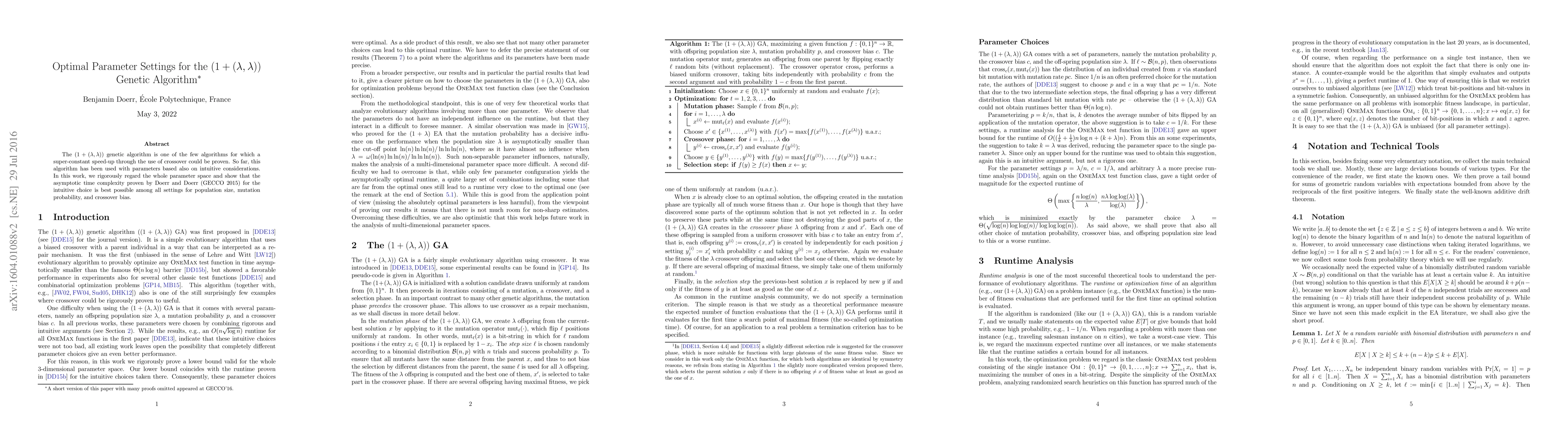 The paper presents a detailed analysis of the $(1+(\lambda, \lambda))$ genetic algorithm's parameter space, proving that the intuitive parameter settings lead to the best-known asymptotic time complexity and identifying optimal parameter values.