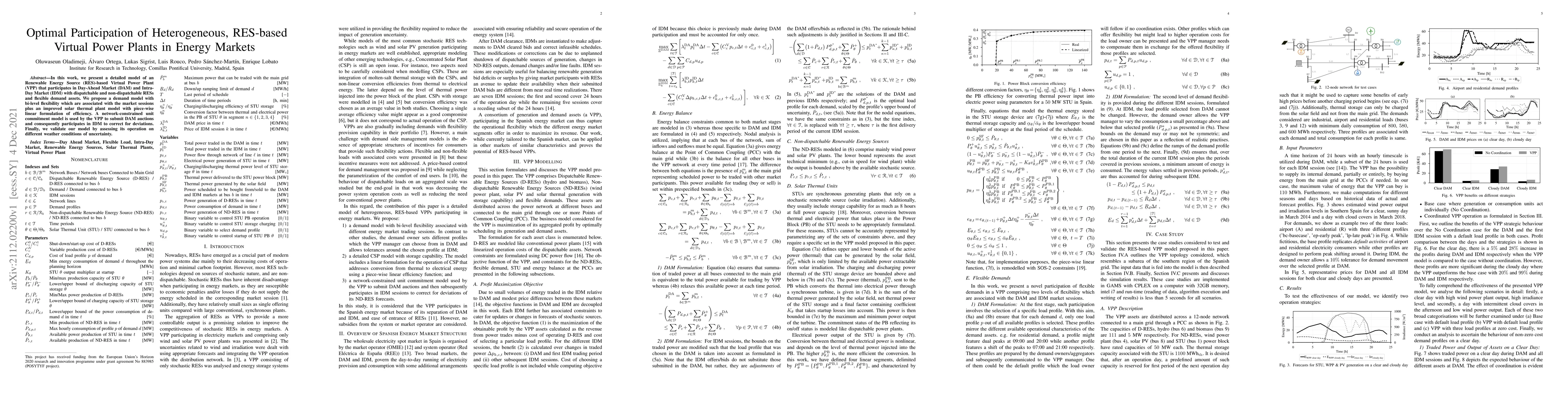 This paper proposes a model for RES-based Virtual Power Plants to optimize participation in energy markets, focusing on demand modeling and unit commitment to minimize deviations and maximize revenue. The model is validated under different weather conditions, showcasing its effectiveness in managing uncertainty.
