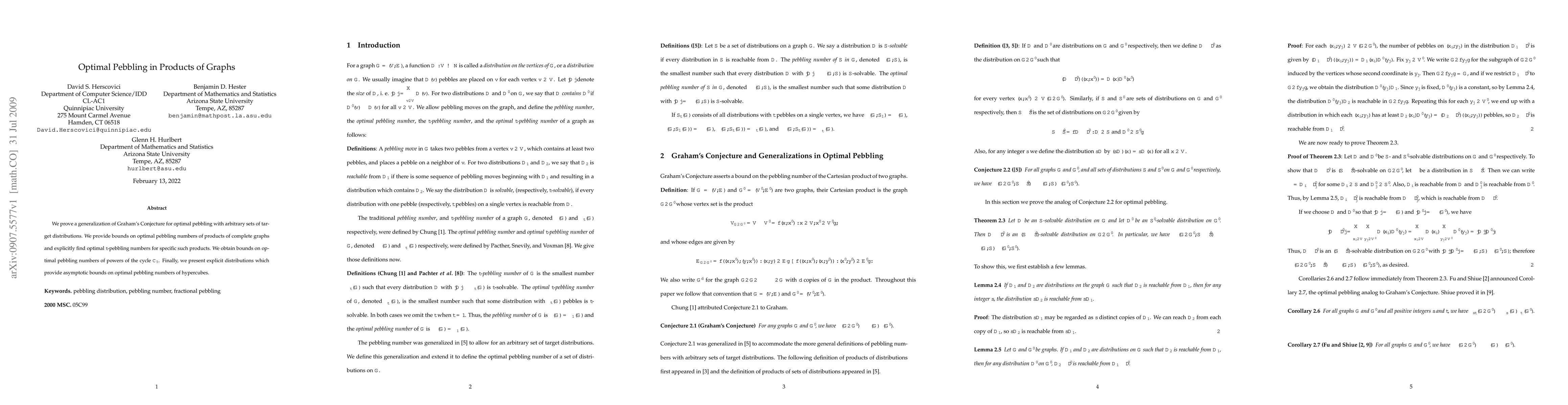 We prove a generalization of Graham's Conjecture for optimal pebbling with arbitrary sets of target distributions. We provide bounds on optimal pebbling numbers of products of complete graphs and explicitly find optimal $t$-pebbling numbers for specific such products. We obtain bounds on optimal pebbling numbers of powers of the cycle $C_5$. Finally, we present explicit distributions which provide asymptotic bounds on optimal pebbling numbers of hypercubes.
