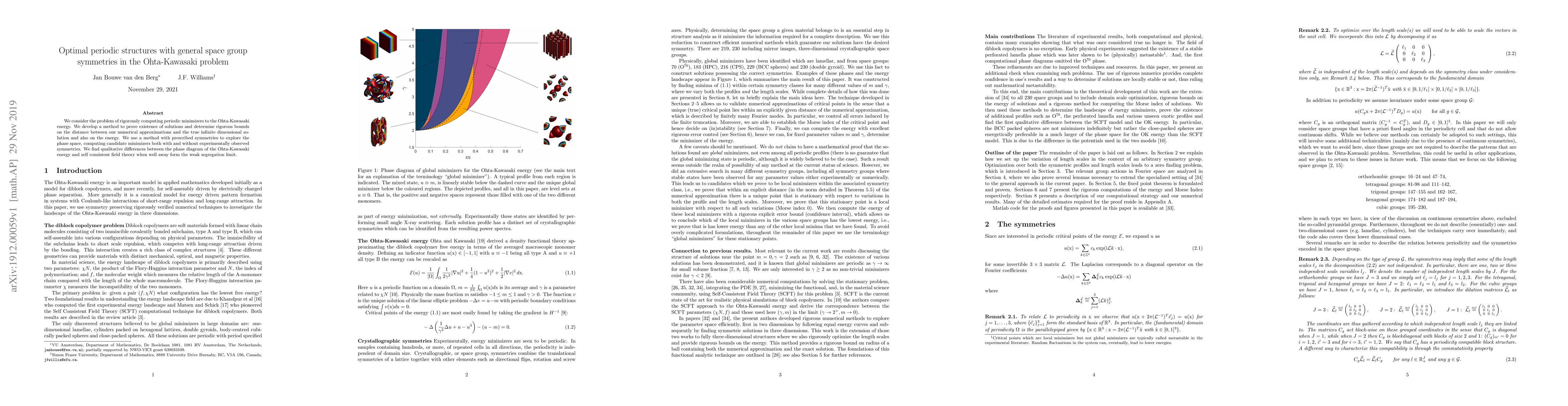 Two-line summary: This paper develops a method to rigorously compute periodic minimizers for the Ohta-Kawasaki energy, proving their existence and establishing bounds on the approximation error. It explores phase space using symmetries and finds significant differences in the phase diagram compared to self-consistent field theory, especially away from the weak segregation limit.