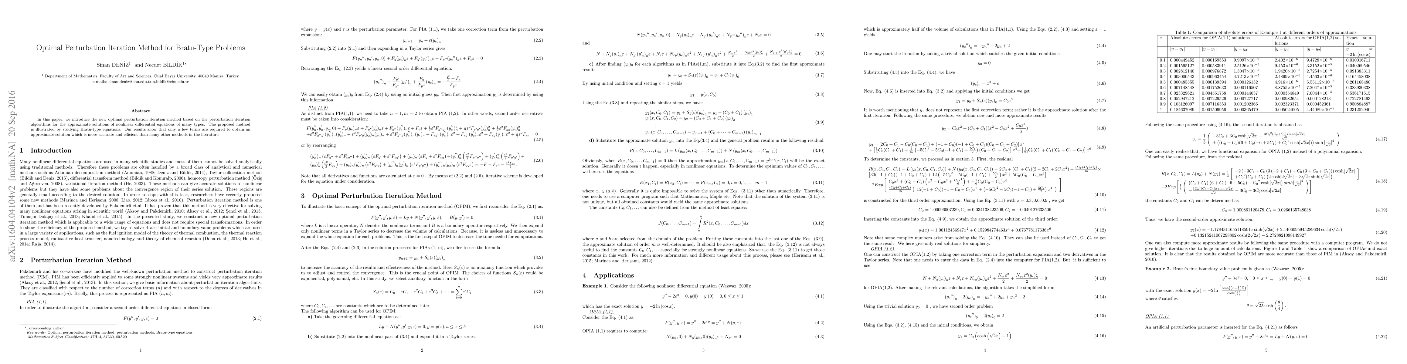 In this paper, we introduce the new optimal perturbation iteration method based on the perturbation iteration algorithms for the approximate solutions of nonlinear differential equations of many types. The proposed method is illustrated by studying Bratu-type equations. Our results show that only a few terms are required to obtain an approximate solution which is more accurate and efficient than many other methods in the literature.