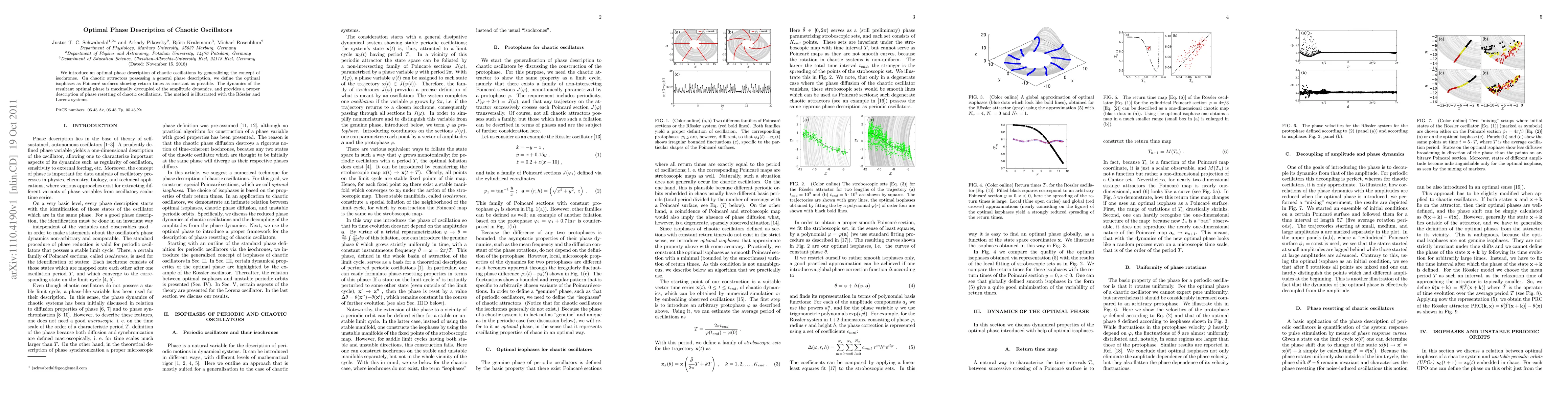This paper proposes an optimal phase description for chaotic oscillators by generalizing isochrones, defining optimal isophases as Poincaré surfaces that maximize return time constancy. This method decouples phase dynamics from amplitude dynamics and is demonstrated using the Rössler and Lorenz systems.