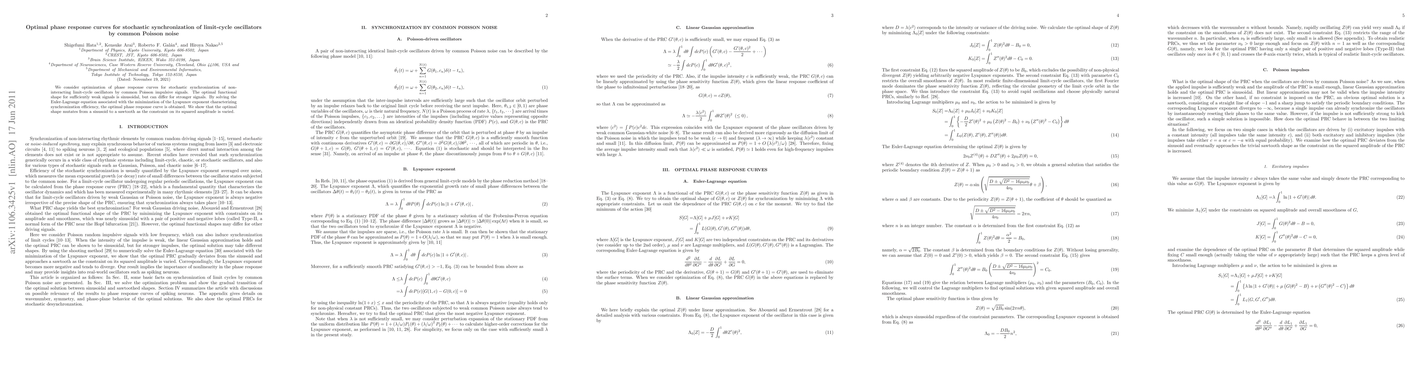 This study optimizes phase response curves to achieve stochastic synchronization among non-interacting limit-cycle oscillators through common Poisson noise. The optimal curve is sinusoidal for weak signals but changes to a sawtooth for stronger signals, determined by solving the Euler-Lagrange equation minimizing synchronization efficiency.