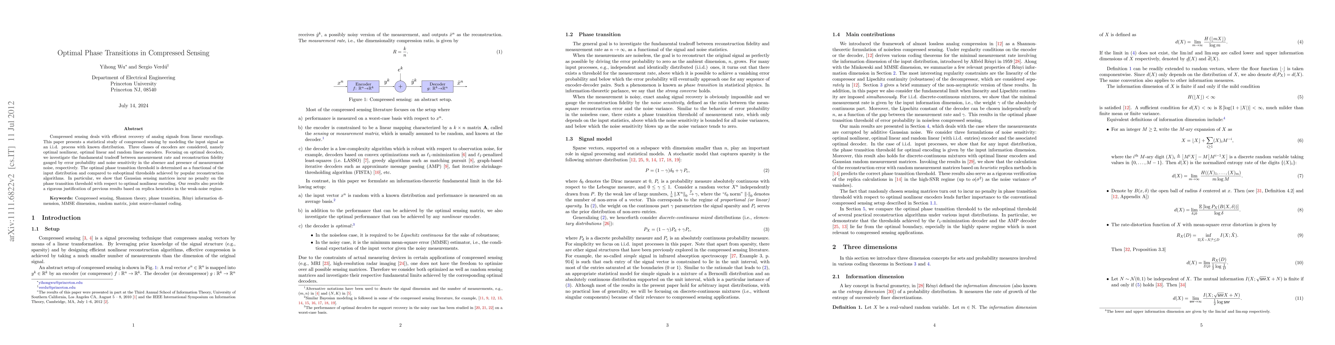 This paper studies optimal phase transitions in compressed sensing, comparing optimal nonlinear, optimal linear, and random linear encoders. It determines the optimal phase transition threshold for Gaussian sensing matrices, showing no penalty compared to nonlinear encoding, and validates previous heuristic-based results in the weak-noise regime.