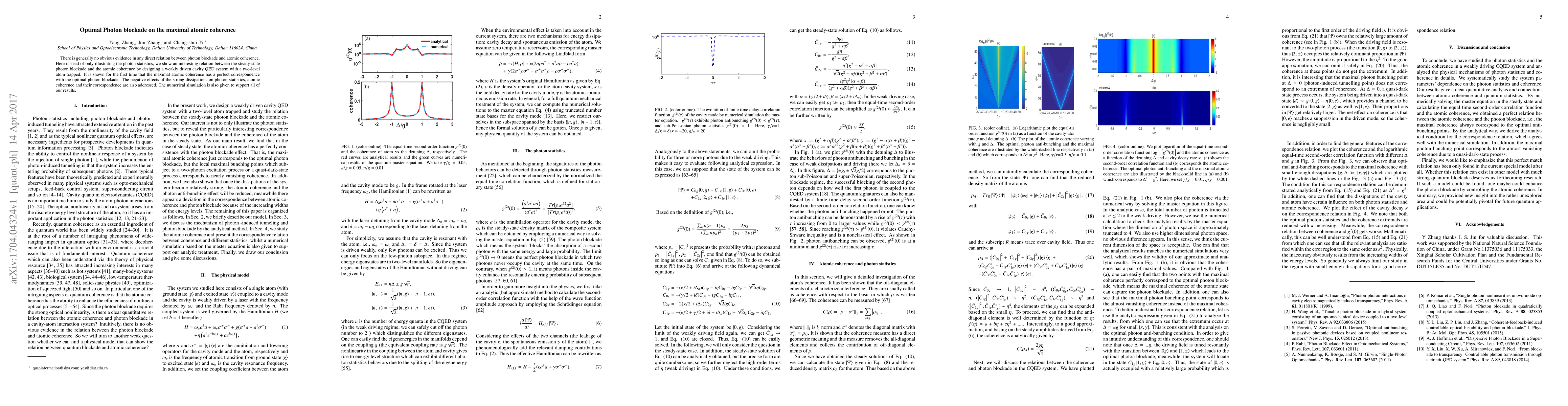 Researchers found a surprising connection between photon blockade and atomic coherence in a weakly driven cavity QED system, showing that maximal atomic coherence corresponds to optimal photon blockade.