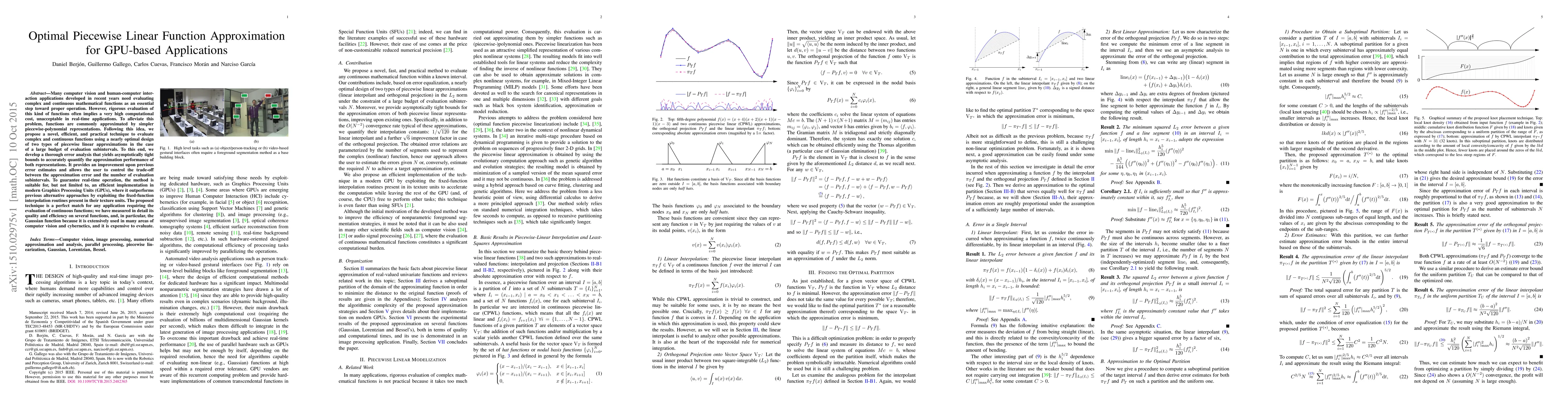 This paper proposes a novel technique for efficiently approximating complex continuous functions using piecewise linear representations, optimized for GPU implementation. The method offers improved error bounds and outperforms previous approaches, making it suitable for real-time applications in computer vision and human-computer interaction.