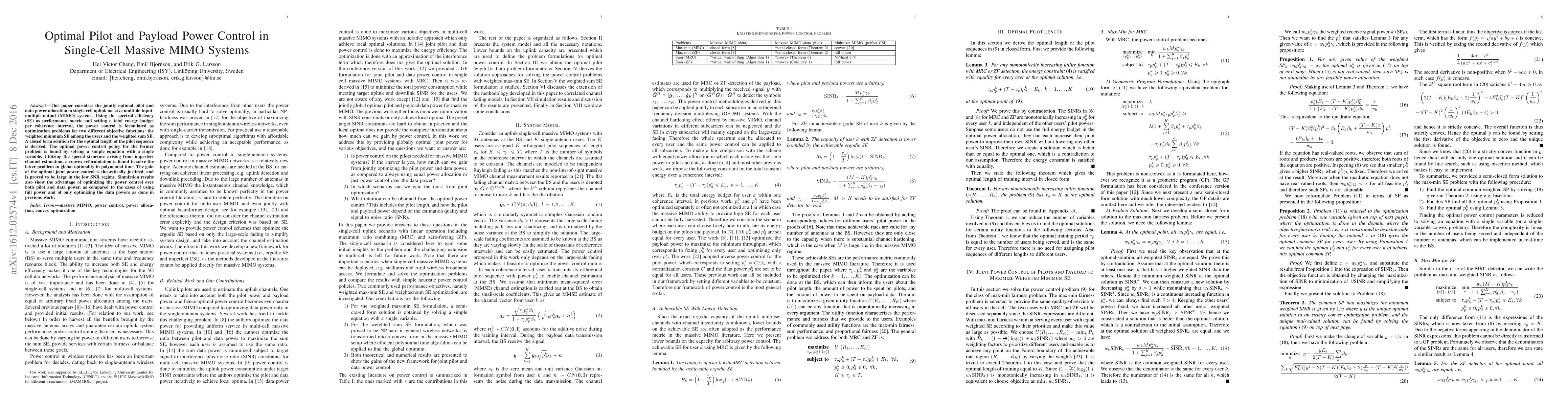 This paper optimizes pilot and data power allocation in single-cell massive MIMO systems to maximize spectral efficiency under energy constraints, deriving closed-form solutions for pilot length and optimal power control policies, and demonstrating significant gains over previous methods.
