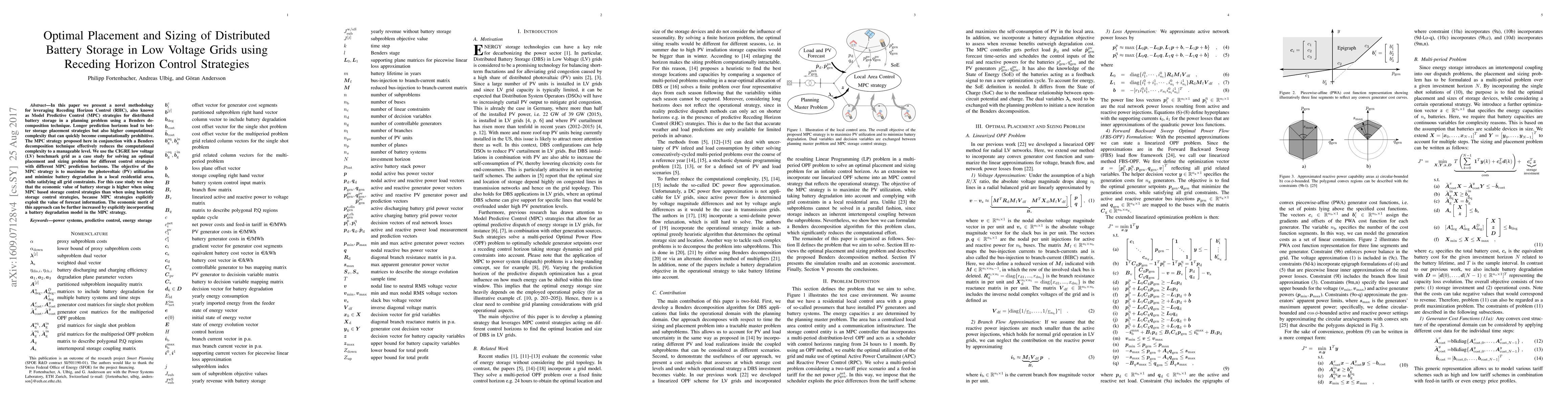 This paper proposes a novel Receding Horizon Control (RHC) strategy using Benders decomposition to optimize the placement and sizing of distributed battery storage in low voltage grids. The approach maximizes photovoltaic utilization and minimizes battery degradation while satisfying grid constraints, demonstrating higher economic value compared to heuristic methods.
