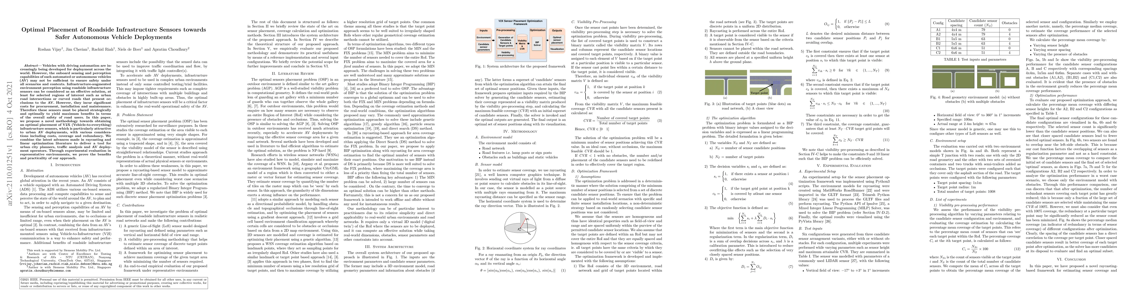 This research is significant as it addresses the challenge of ensuring safety for autonomous vehicles by optimizing the placement of roadside infrastructure sensors, which can complement onboard sensing and perception capabilities. The proposed methodology can help reduce costs associated with procurement, installation, and maintenance of sensors while maximizing overall safety benefits for road users.