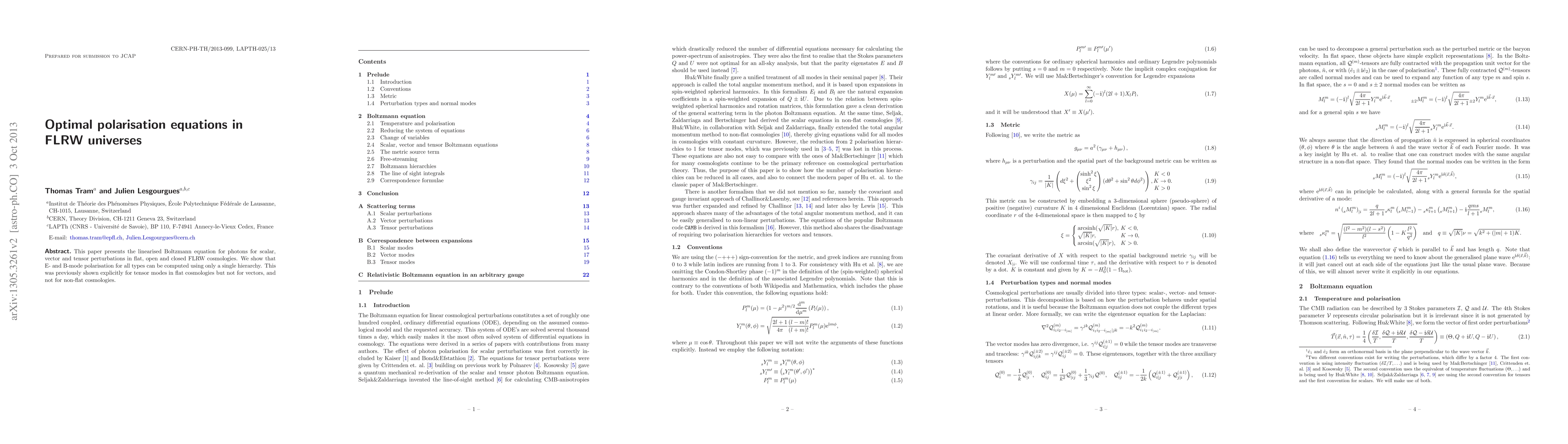 This paper presents the linearised Boltzmann equation for photons for scalar, vector and tensor perturbations in flat, open and closed FLRW cosmologies. We show that E- and B-mode polarisation for all types can be computed using only a single hierarchy. This was previously shown explicitly for tensor modes in flat cosmologies but not for vectors, and not for non-flat cosmologies.