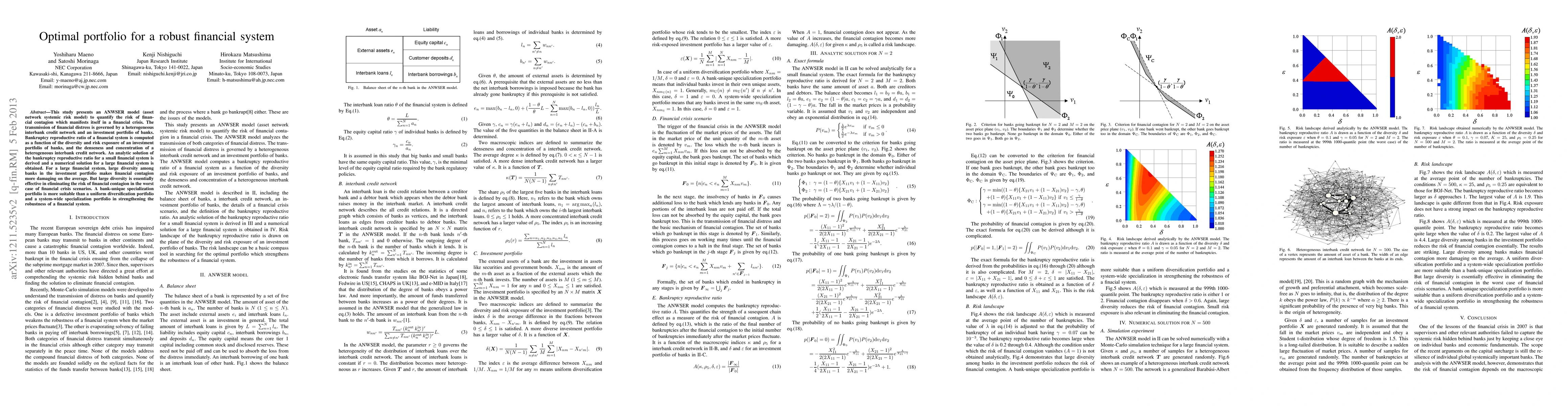 This study presents an ANWSER model (asset network systemic risk model) to quantify the risk of financial contagion which manifests itself in a financial crisis. The transmission of financial distress is governed by a heterogeneous bank credit network and an investment portfolio of banks. Bankruptcy reproductive ratio of a financial system is computed as a function of the diversity and risk exposure of an investment portfolio of banks, and the denseness and concentration of a heterogeneous bank credit network. An analytic solution of the bankruptcy reproductive ratio for a small financial system is derived and a numerical solution for a large financial system is obtained. For a large financial system, Large diversity among banks in the investment portfolio makes financial contagion more damaging on the average. But large diversity is essentially effective in eliminating the risk of financial contagion in the worst case of financial crisis scenarios. A bank-unique specialization portfolio is more suitable than a uniform diversification portfolio and a system-wide specialization portfolio in strengthening the robustness of a financial system.
