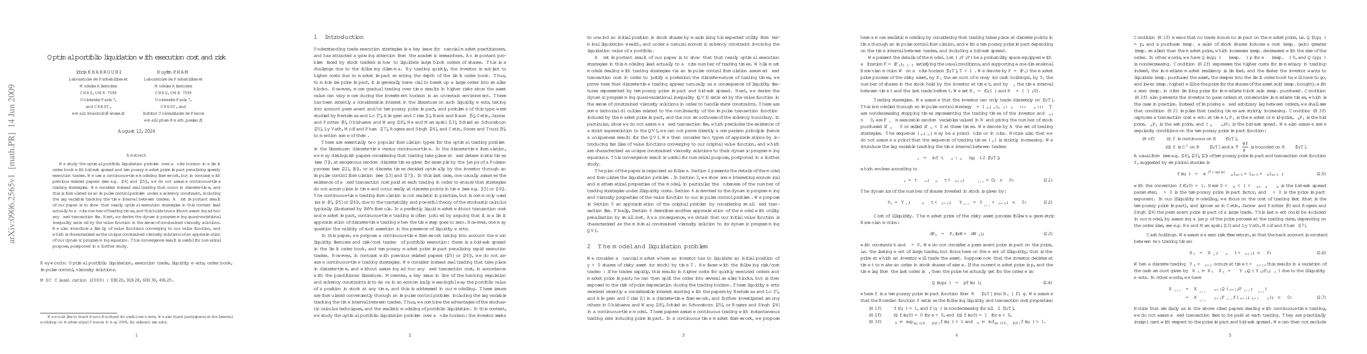 This research paper studies optimal portfolio liquidation strategies with execution costs and risk in a limit order book market, finding that nearly optimal approaches lead to a limited number of trading times without fixed transaction fees.
