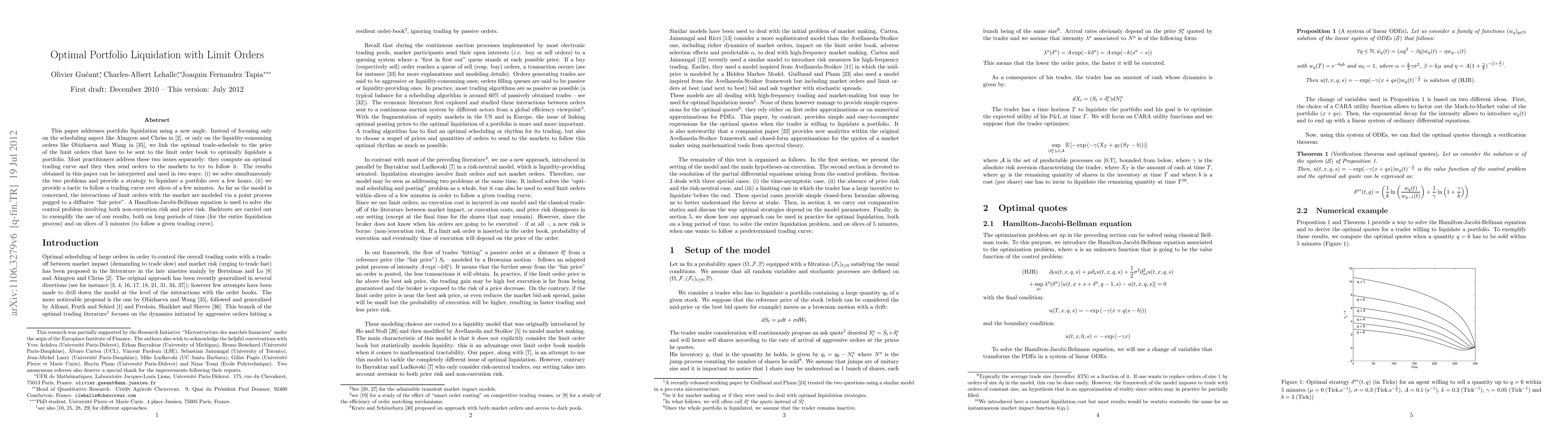 This paper proposes an optimal method for portfolio liquidation using limit orders, integrating trade-schedule optimization with limit order pricing. It employs a Hamilton-Jacobi-Bellman equation to address both non-execution and price risks, and backtests demonstrate its effectiveness over long and short time frames.