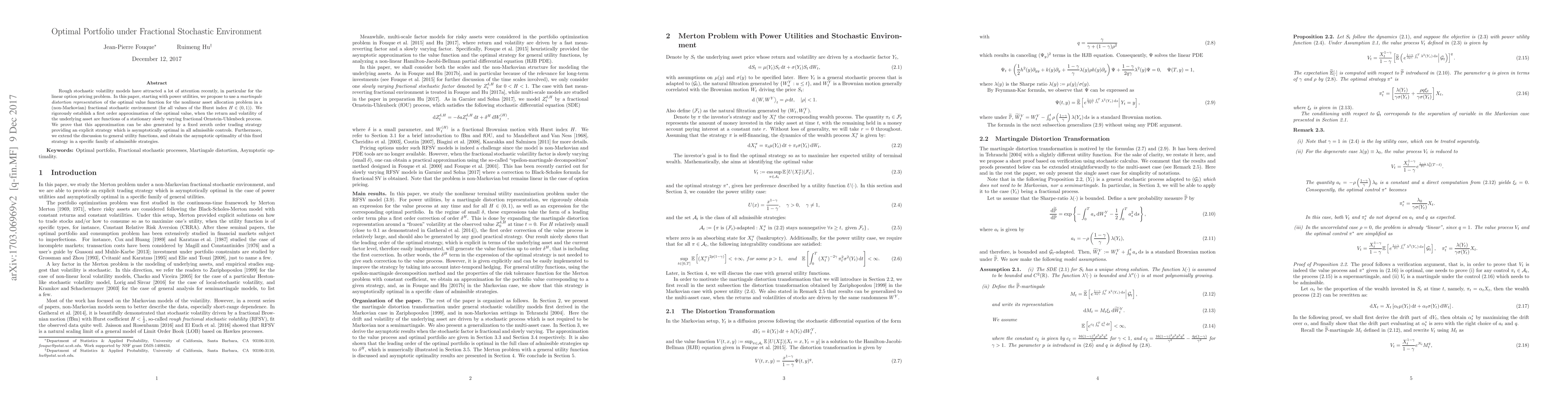 Rough stochastic volatility models have attracted a lot of attentions recently, in particular for the linear option pricing problem. In this paper, starting with power utilities, we propose to use a martingale distortion representation of the optimal value function for the nonlinear asset allocation problem in a (non-Markovian) fractional stochastic environment (for all Hurst index $H \in (0,1)$). We rigorously establish a first order approximation of the optimal value, where the return and volatility of the underlying asset are functions of a stationary slowly varying fractional Ornstein-Uhlenbeck process. We prove that this approximation can be also generated by a fixed zeroth order trading strategy providing an explicit strategy which is asymptotically optimal in all admissible controls. Furthermore, we extend the discussion to general utility functions, and obtain the asymptotic optimality of this fixed strategy in a specific family of admissible strategies.