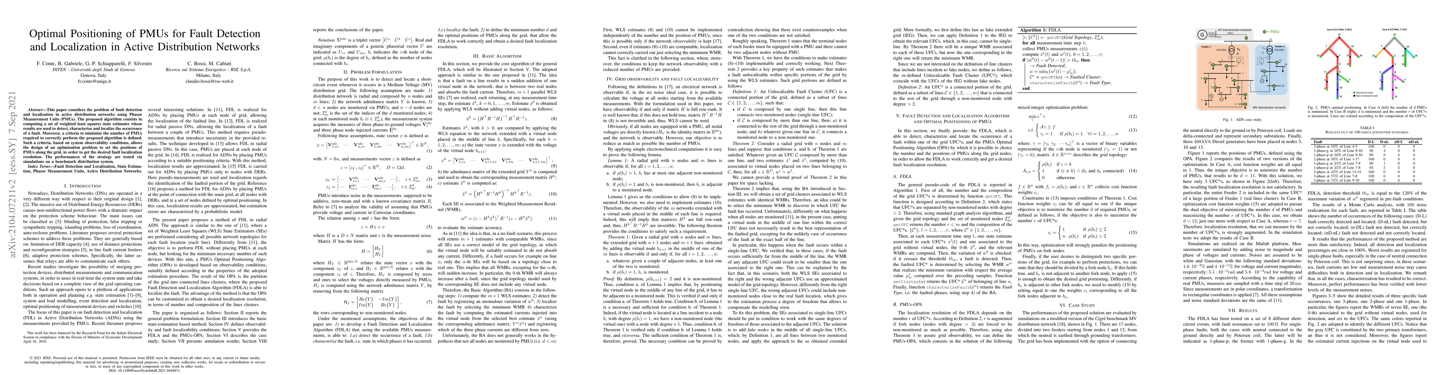 This paper proposes an algorithm for fault detection and localization in active distribution networks using PMUs, optimizing their placement based on system observability to minimize the number of PMUs. Simulation results on a benchmark system validate the effectiveness of the proposed strategy.