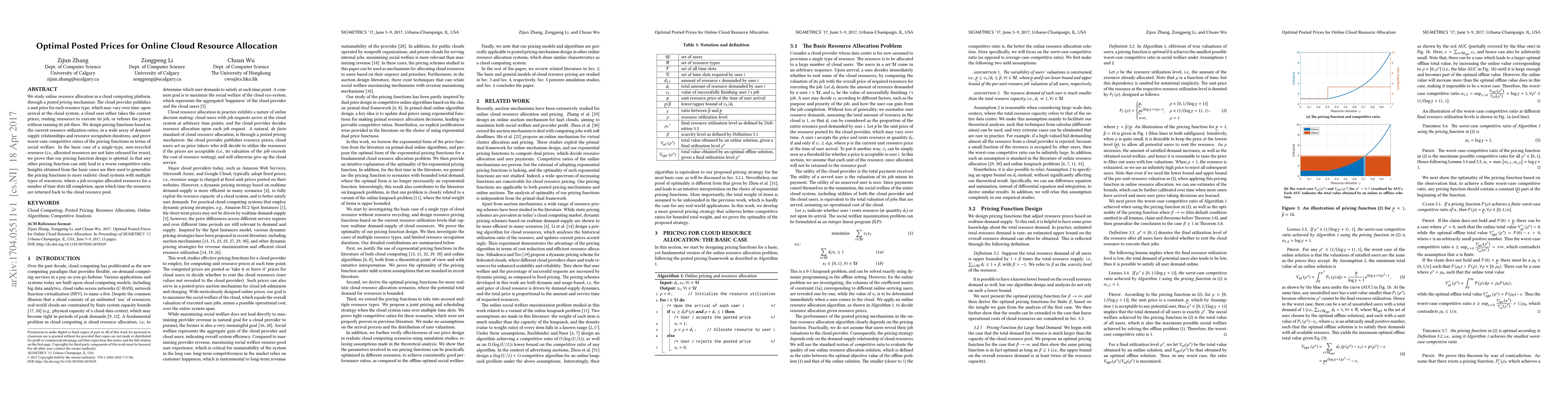This paper investigates optimal posted pricing strategies for online cloud resource allocation, proving competitive ratios for various pricing functions based on resource utilization. The authors demonstrate that their pricing design is optimal for single-type resources and extend these insights to multi-type resource systems with dynamic allocation periods.