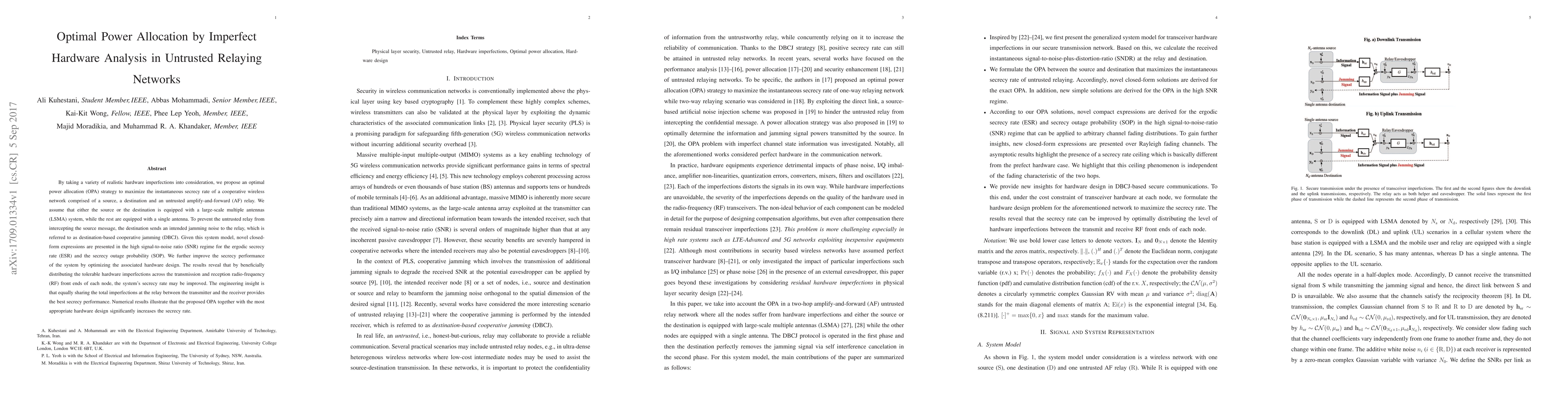 This paper proposes an optimal power allocation strategy to maximize the secrecy rate in untrusted relaying networks, considering hardware imperfections. It introduces destination-based cooperative jamming and presents closed-form expressions for ergodic secrecy rate and secrecy outage probability, showing that optimal hardware design can significantly enhance system secrecy.