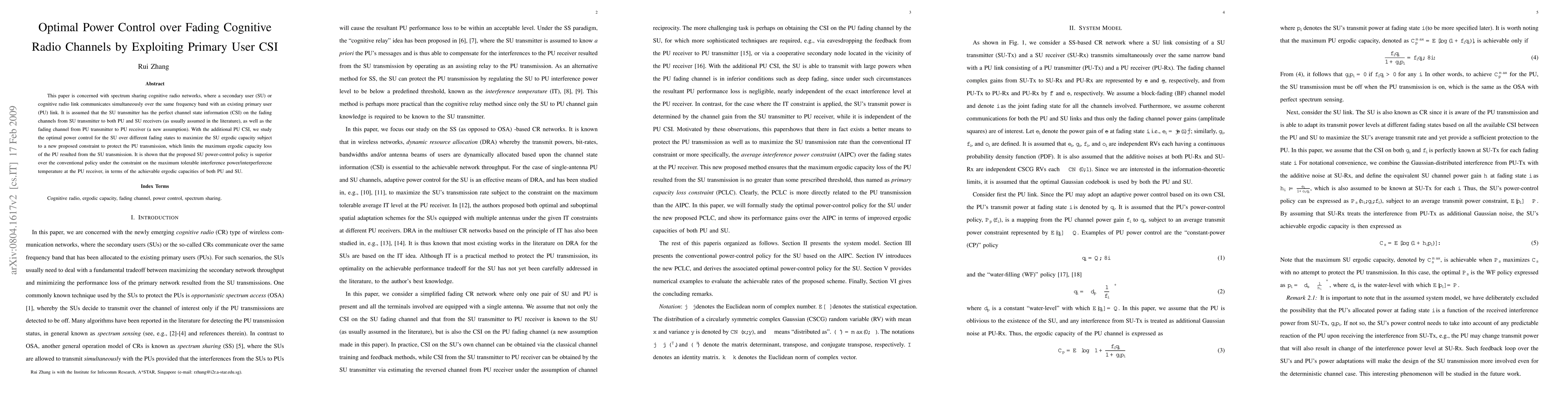 The paper presents a novel power control policy for cognitive radio networks that utilizes complete CSI on fading channels between primary and secondary users, directly constraining the maximum tolerable PU ergodic capacity loss, leading to improved performance compared to conventional policies.