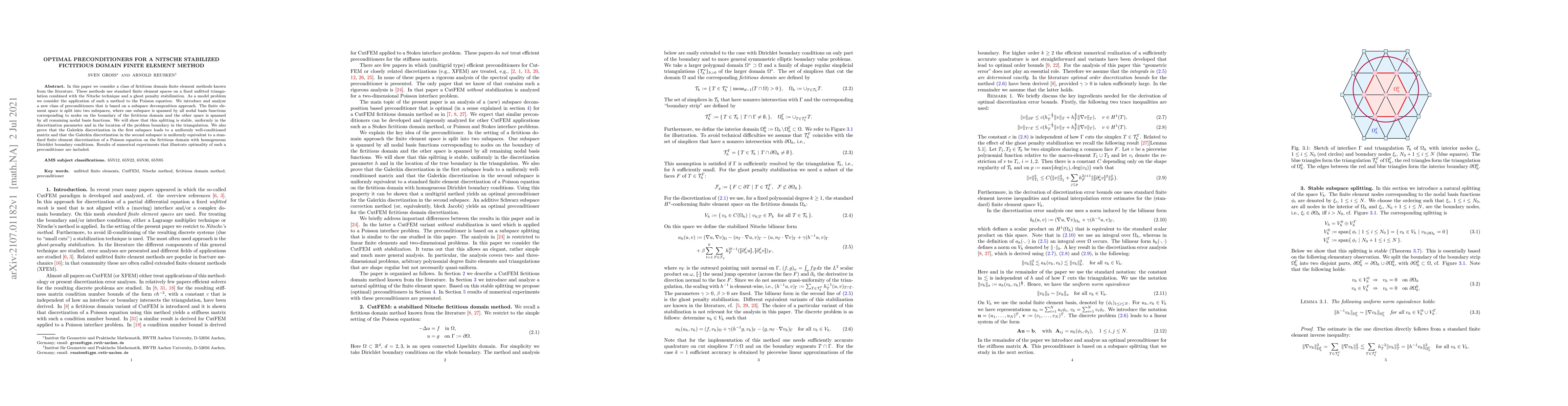 This paper introduces a new class of preconditioners for a Nitsche stabilized fictitious domain finite element method applied to the Poisson equation. The new preconditioners are based on a subspace decomposition approach, showing stability and uniform conditioning, and are demonstrated to be optimal through numerical experiments.