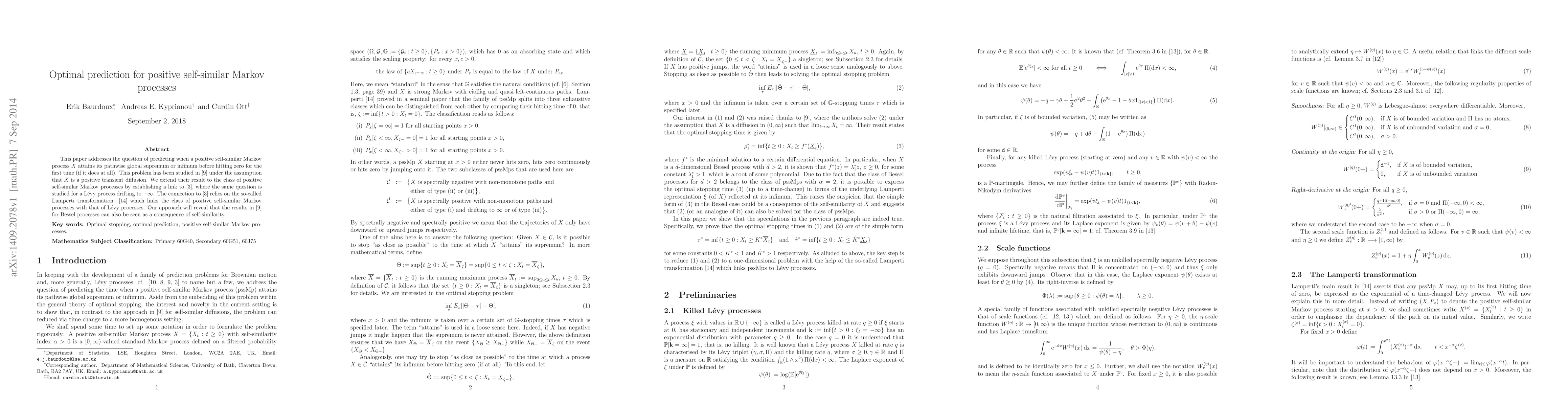 This paper extends the prediction results for when a positive self-similar Markov process reaches its global supremum or infimum before hitting zero, using the Lamperti transformation to link it to results for Lévy processes. This generalizes prior work on positive transient diffusions.