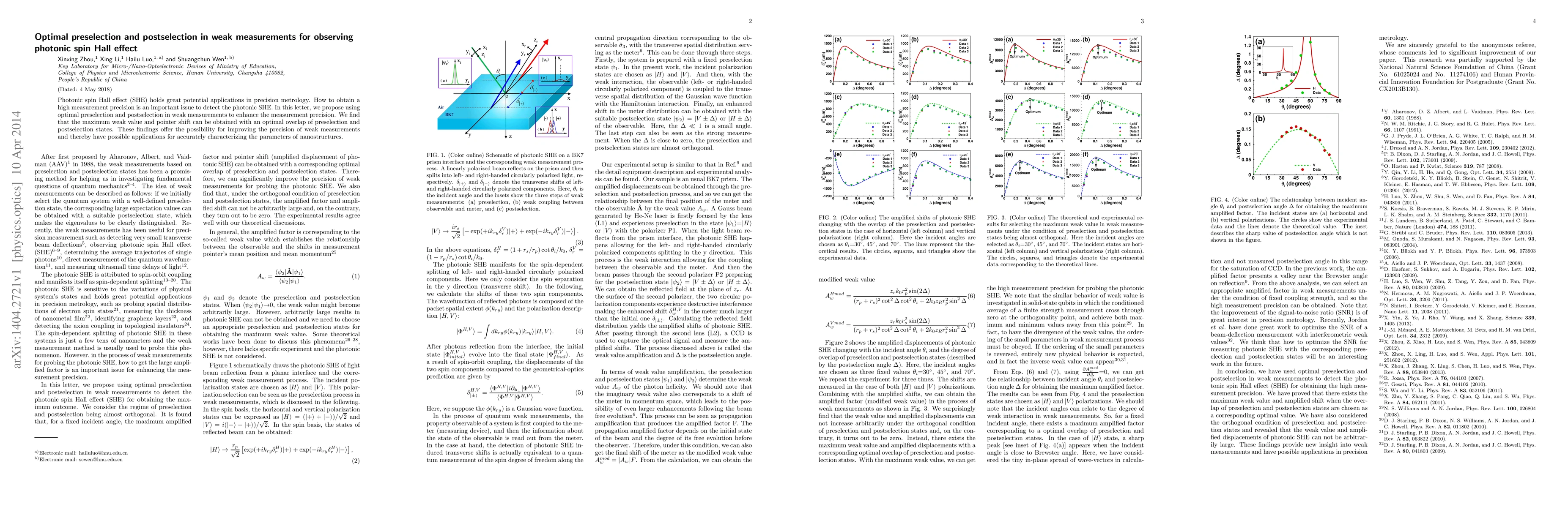 This paper proposes a method using optimal preselection and postselection in weak measurements to enhance the precision of detecting the photonic spin Hall effect, achieving maximum weak value and pointer shift through optimal state overlap, thus improving measurement accuracy for nanostructure characterization.