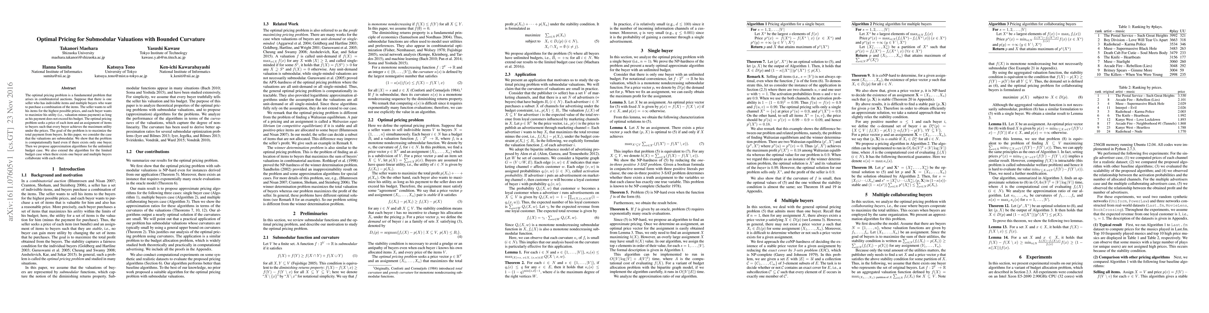 This paper addresses the optimal pricing problem in combinatorial auctions with submodular valuations and bounded curvature, demonstrating computational hardness. It proposes approximation algorithms for both unlimited and limited budget scenarios, focusing on maximizing total payments from buyers.