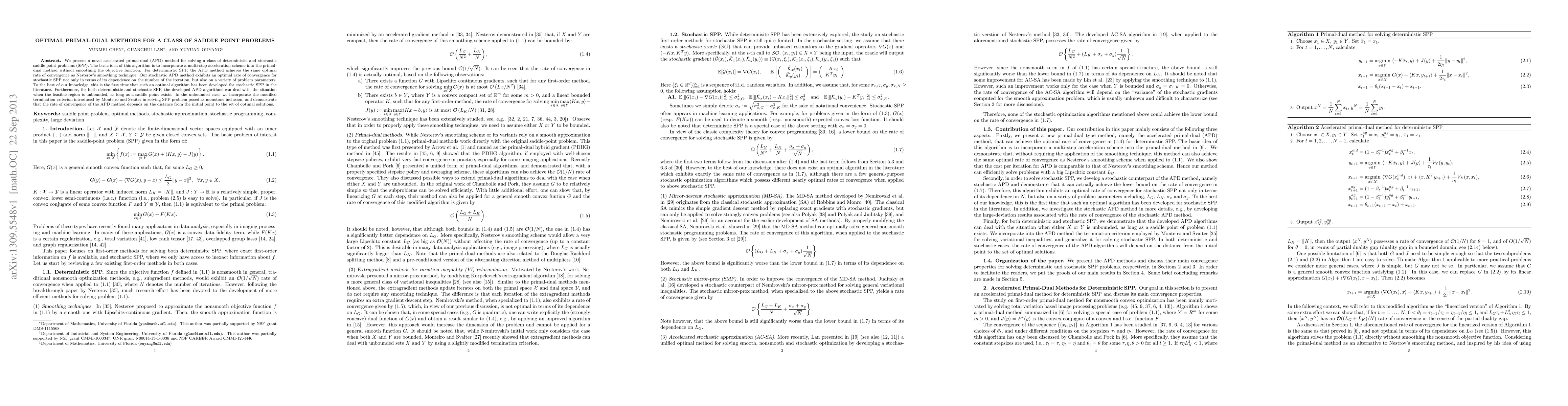 This paper presents an accelerated primal-dual (APD) method for solving deterministic and stochastic saddle point problems, achieving optimal convergence rates without smoothing the objective function. The method is effective for both bounded and unbounded feasible regions, demonstrating optimal convergence rates dependent on iteration count and problem parameters.