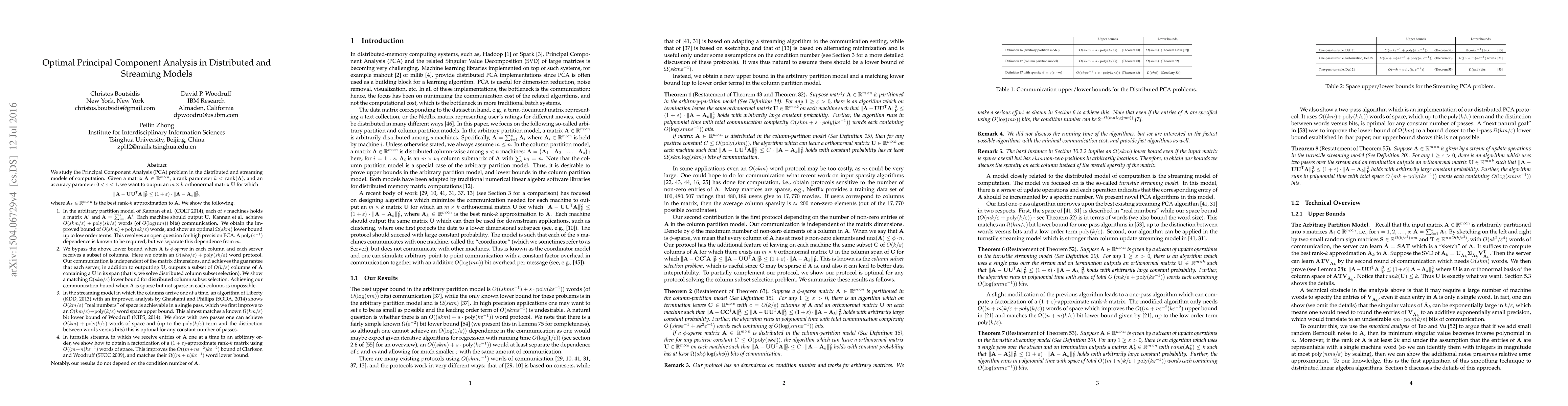 This paper presents enhanced algorithms for performing Principal Component Analysis in distributed and streaming computational models, aiming to approximate the best rank-$k$ matrix approximation with specified accuracy.