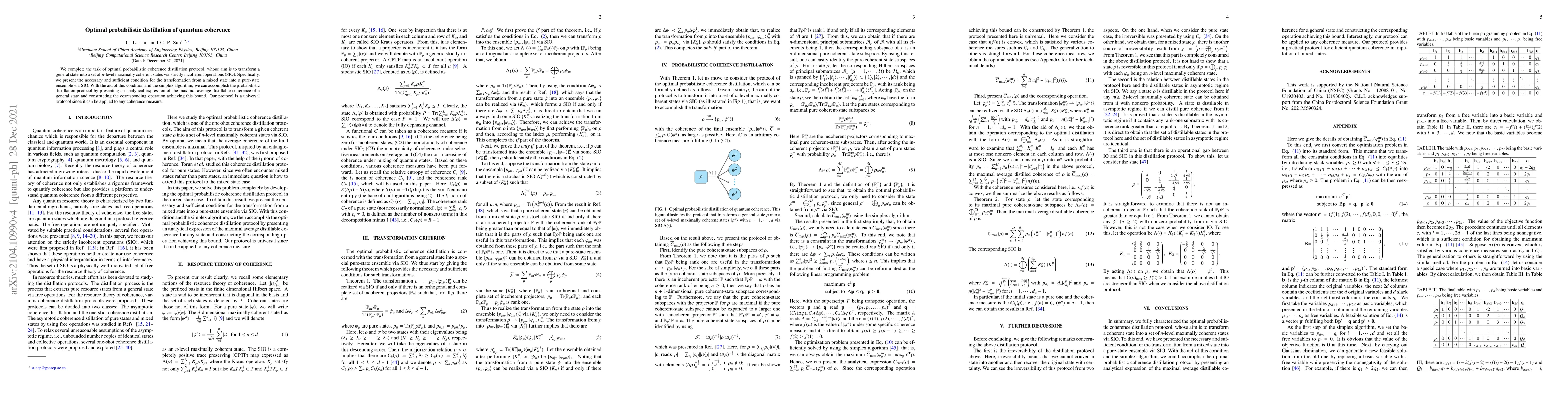 The research presents a necessary and sufficient condition for transforming a mixed state into a pure-state ensemble via strictly incoherent operations (SIO), utilizing the simplex algorithm to accomplish the optimal probabilistic coherence distillation protocol.